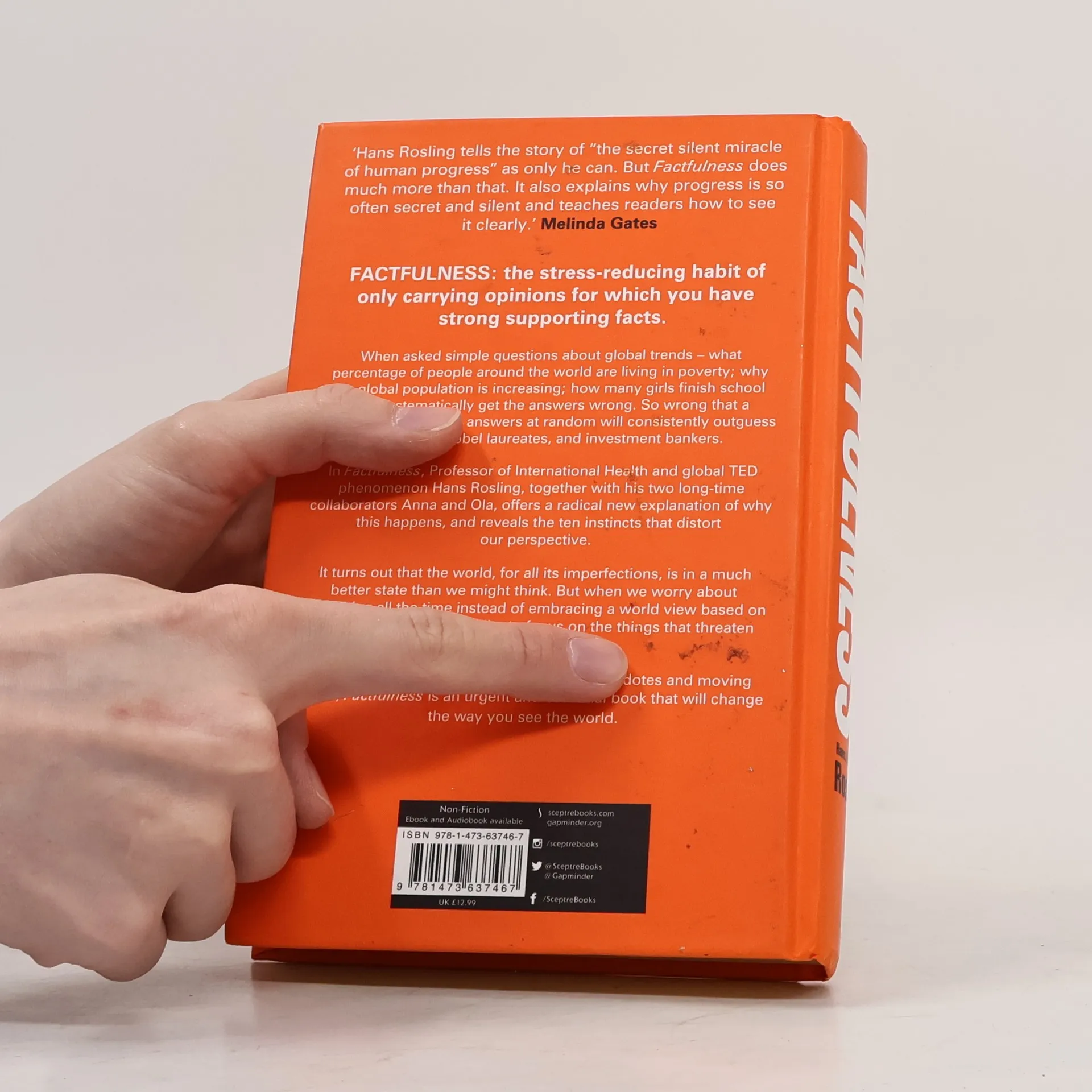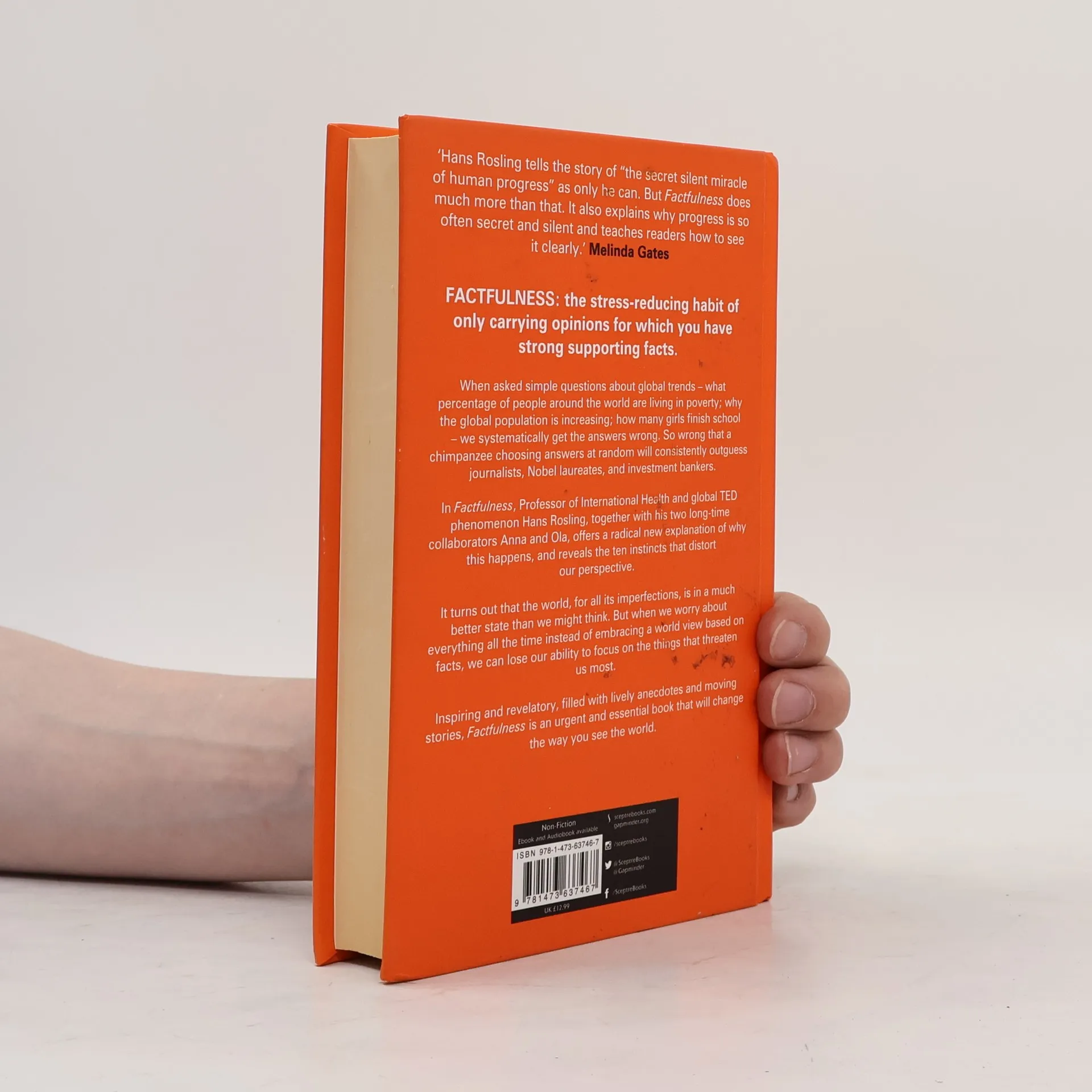 Factfulness: The stress-reducing habit of only carrying opinions for which you have strong supporting facts. When asked simple questions about global trends - why the world's population is increasing; how many young women go to school; how many of us live in poverty - we systematically get the answers wrong. So wrong that a chimpanzee choosing answers at random will consistently outguess journalists, Nobel laureates, and investment bankers. In Factfulness, Professor of International Health and a man who can make data sing, Hans Rosling, together with his two long-time collaborators Anna and Ola, offers a radical new explanation of why this happens, and reveals the ten instincts that distort our perspective. It turns out that the world, for all its imperfections, is in a much better state than we might think. But when we worry about everything all the time instead of embracing a worldview based on facts, we can lose our ability to focus on the things that threaten us most. Inspiring and revelatory, filled with lively anecdotes and moving stories, Factfulness is an urgent and essential book that will change the way you see the world