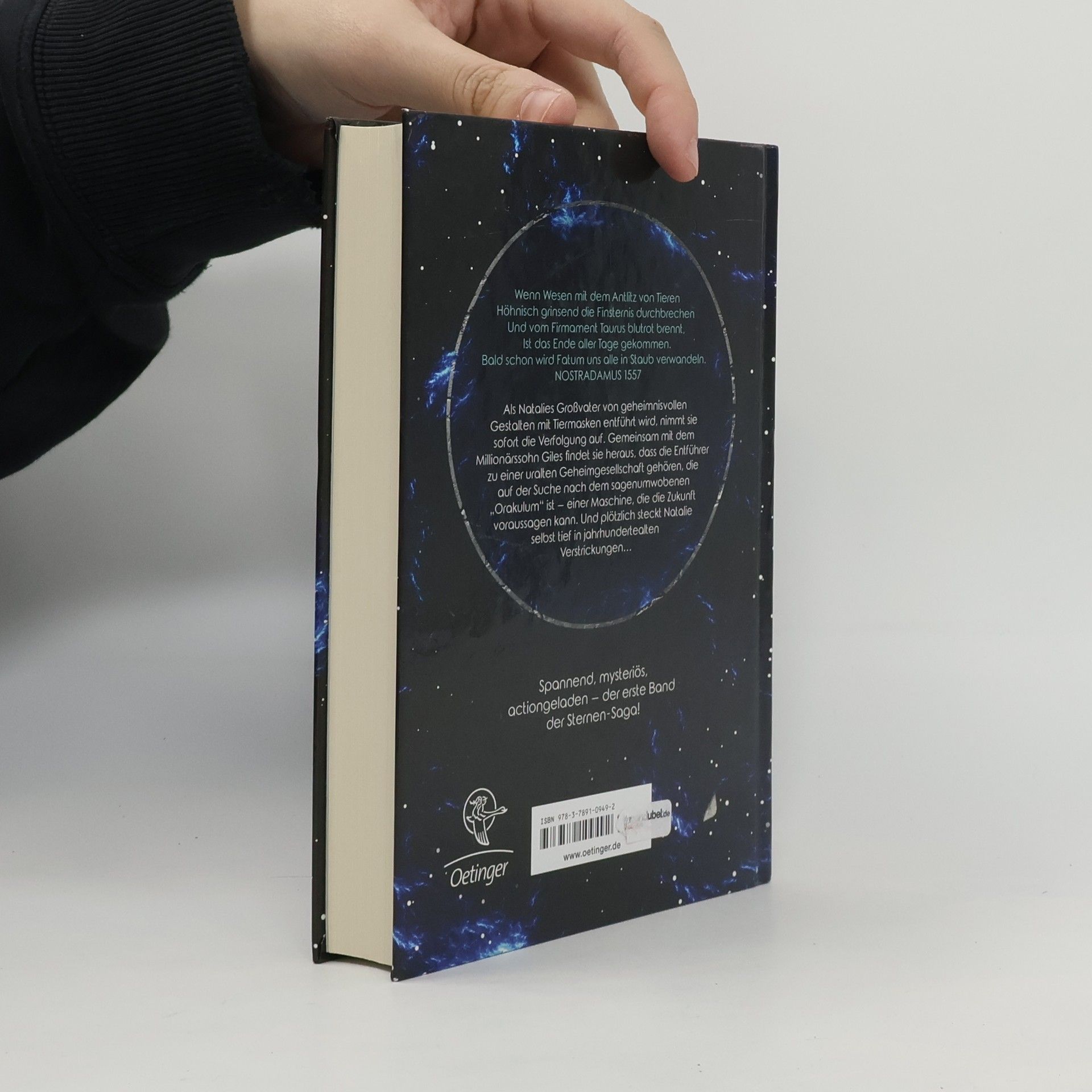 Das Schicksal der Welt liegt in der Macht der Sterne. Natalie Hardaker bereist mit ihrem Großvater die ganze Welt, um die Geheimnisse der Astronomie zu entschlüsseln. Als dieser plötzlich verschwindet, macht sie sich auf die Suche nach ihm. Mithilfe des arroganten Giles findet sie heraus, dass er von einem antiken Kult entführt wurde, der auf der Suche nach dem sagenumwobenen Orakulum ist, Nostradamus’ Prophezeiungsmaschine. Und plötzlich steckt Natalie tief in jahrhundertealten Verstrickungen. Was ist, wenn sie die einzige ist, die die Welt retten kann? Spannender Auftakt der spektakulären Sternen-Saga über die Rätsel des Universums von den Machern von Warrior Cats. Unglaublich mysteriös und temporeich!