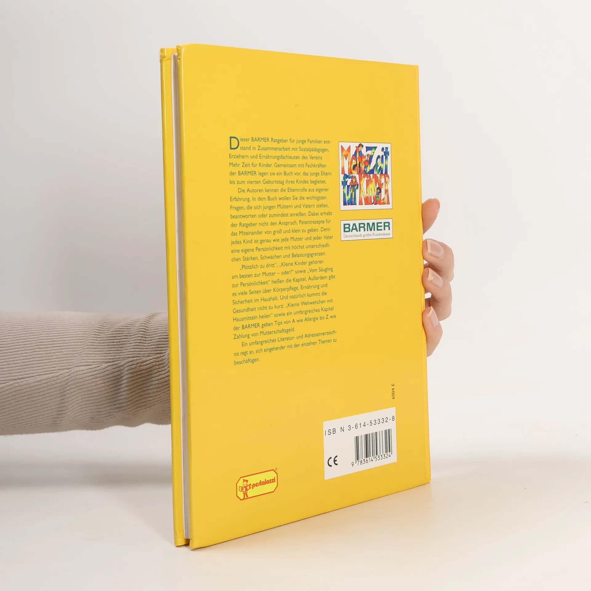 Das erste Kind zu bekommen bedeutet für junge Eltern einen großen Einschnitt im Leben. Beruf, Freizeit, Freunde und Hobbys treten in den Hintergrund und den frisch gebackenen Eltern stellen sich viele Fragen: Wie oft soll ich das Kind baden? Warum schreit es so viel? Was ist bei der Einrichtung des Kinderzimmers zu beachten? Welche Ernährung ist richtig für mein Kind? Antworten gibt dieser Ratgeber, der junge Eltern bis zum vierten Geburtstag ihres Kindes begleiten soll. Der Mehr Zeit für Kinder e.V. hat die farbenfroh illustrierte Publikaton gemeinsam mit der BARMER Ersatzkasse herausgebracht. Die Autoren Sozialpädagogen, Erzieher und Ernährungsfachleute kennen die Elternrolle und geben in insgesamt 24 Kapiteln wie Plötzlich zu dritt, Bewegung für Eltern und Kind sowie Vom Säugling zur Persönlichkeit wertvolle Tipps und Ratschläge. Außerdem enthält das Buch viele Anregungen zu Körperpflege, Ernährung und Sicherheit im Haushalt. Und natürlich findet auch die Gesundheit Beachtung: Kleine Wehwehchen mit Hausmitteln heilen . Ein umfangreiches Kapitel vermittelt Tipps von A wie Allergie bis Z wie Zahlung von Mutterschaftsgeld. Auch die seit Januar 2001 geltende gesetzliche Regelung zur Elternzeit wird berücksichtigt