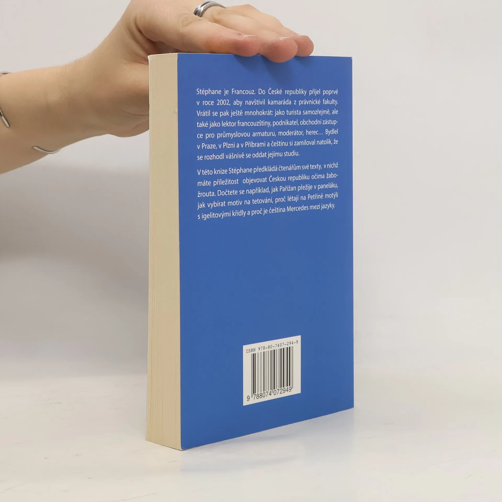 Stéphane je Francouz. Do České republiky přijel poprvé v roce 2002, aby navštívil kamaráda z právnické fakulty. Vrátil se pak ještě mnohokrát: jako turista samozřejmě, ale také jako lektor francouzštiny, podnikatel, obchodní zástupce pro průmyslovou armaturu, moderátor, herec… Bydlel v Praze, v Plzni a v Příbrami, a češtinu si zamiloval natolik, že se rozhodl vášnivě se věnovat jejímu studiu. V této knize vám přináší sbírku textů, abyste mohli objevovat Českou republiku očima žabožrouta. Dočtete se například, jak Pařížan přežije v paneláku, jak vybírat motiv na tetování, proč létají na Petříně motýli s igelitovými křídly a proč je čeština Mercedes mezi jazyky.