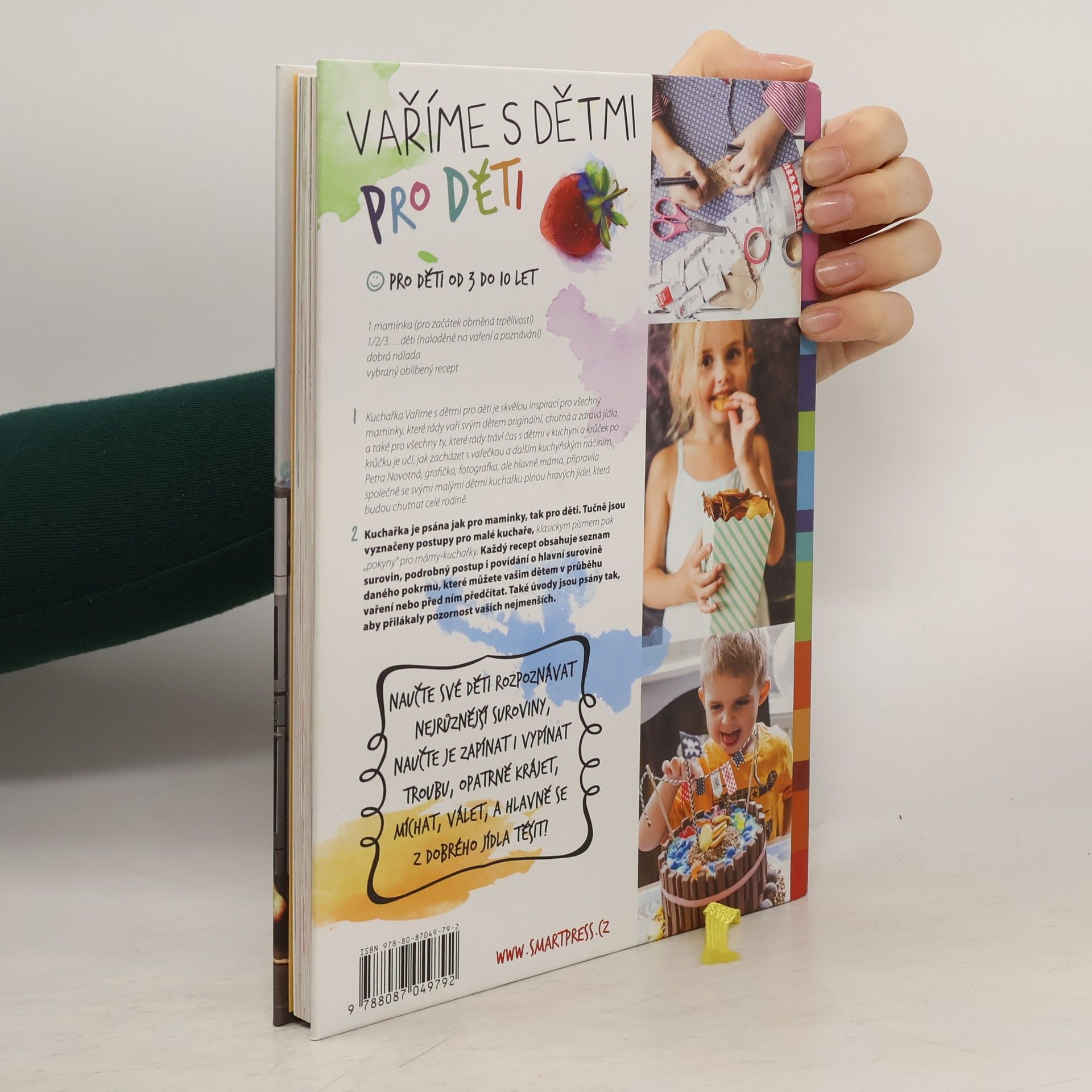 Tato kuchařka je skvělou inspirací pro všechny maminky, které rády vaří svým dětem originální, chutná a zdravá jídla, a také pro všechny ty, které rády tráví čas s dětmi v kuchyni a krůček po krůčku je učí, jak zacházet s vařečkou a dalším náčiním. Petra Novotná, grafička, fotografka, ale hlavně máma, připravila společně se svými malými dětmi kuchařku plnou krásných jídel, která budou chutnat dětem i vám. Takových jídel, na nichž děti projeví svou kreativitu a další dovednosti. Petra chce maminkám ukázat, že není třeba být přehnaně ve stresu z toho, co děti dostávají na stůl, naopak! I v kuchyni je třeba si to s těmi nejmenším i patřičně užít! Kniha je psaná jak pro maminky, tak pro děti. Tučně jsou vyznačeny postupy pro malé kuchaře, klasickým písmem pak pokyny pro velké kuchařky. Naučte své děti při vaření rozpoznávat nejrůznější suroviny i jejich vlastnosti, naučte je zapínat i vypínat troubu, opatrně krájet ovoce i zeleninu do salátu, míchat, válet a hlavně se z dobrého jídla těšit!