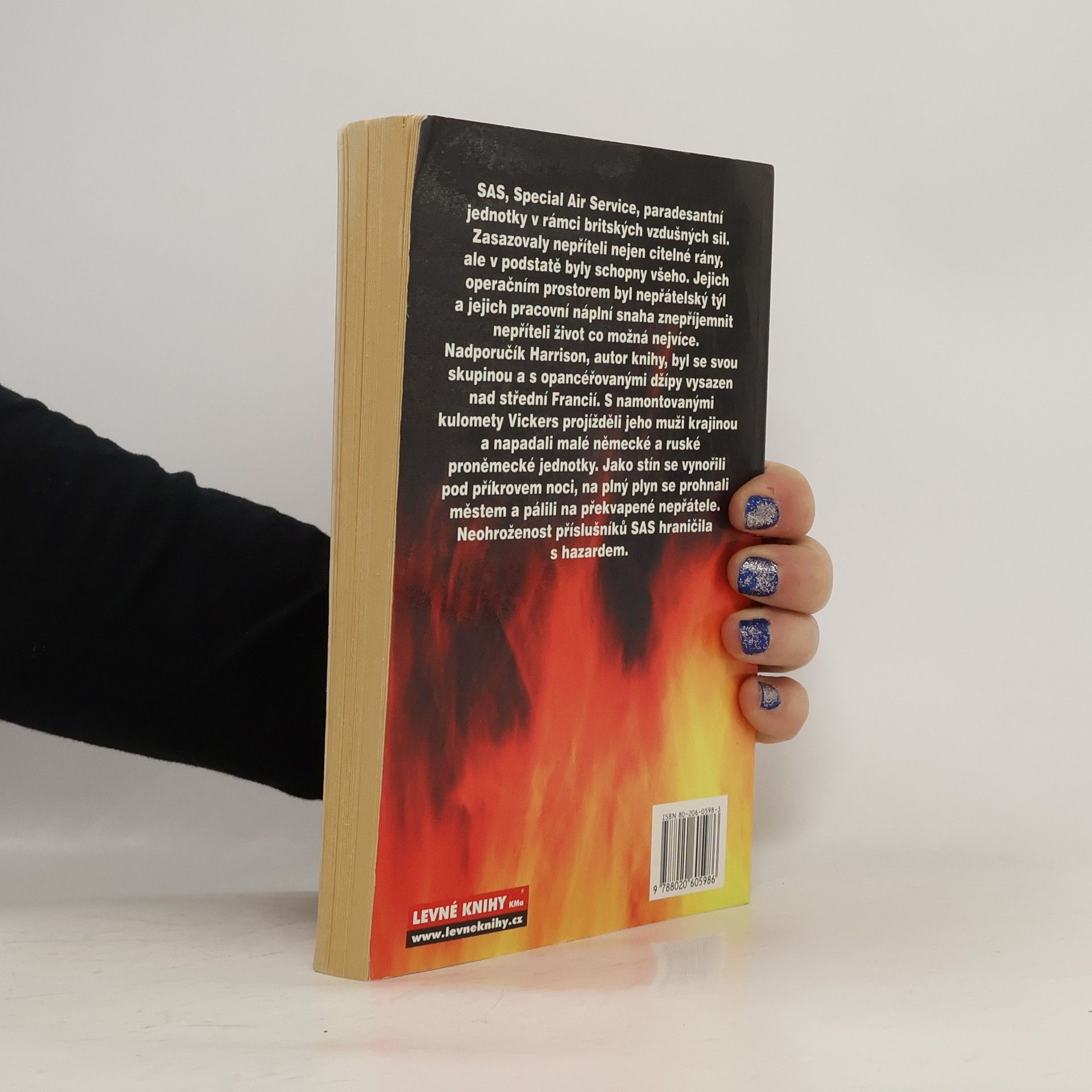 SAS – Special Air Service (paradesantní jednotky v rámci vzdušných sil) tvořila skupina mužů schopných nejen zasazovat nepříteli citelné rány, ale v podstatě schopných všeho. Jejich pracovištěm byl nepřátelský týl a jejich pracovní náplní snaha znepříjemnit nepříteli život co možnánejvíc. Nadporučík Harrison, autor knihy, byl se svou skupinou a s opancéřovanými džípy vysazen nad střední Francií. S namontovanými kulomety Vickers projížděli jeho muži krajinou a napadali malé německé a ruské proněmecké jednotky. Jako stíny se vynořili pod příkrovem noci, na plný plyn se prohnali městem a pálili na překvapené německé vojáky. Často nad zaskočeným nepřítelem vítězili. To tehdy, když neměl čas se z přepadení vzpamatovat. Někdy však umírali oni sami. To tenkrát, když nepřítele podcenili. Neohroženost příslušníků SAS hraničila se ztřeštěností; nadporučík Goddard sám zaútočil s kulometem Bren na obsluhy dvou německých rychlopalných děl. Řadový výsadkář Jemson s jednou rukou následkem zranění nehybnou zaměstnával německou zálohu, aby se jeho skupina mohla včas stáhnout do bezpečí...