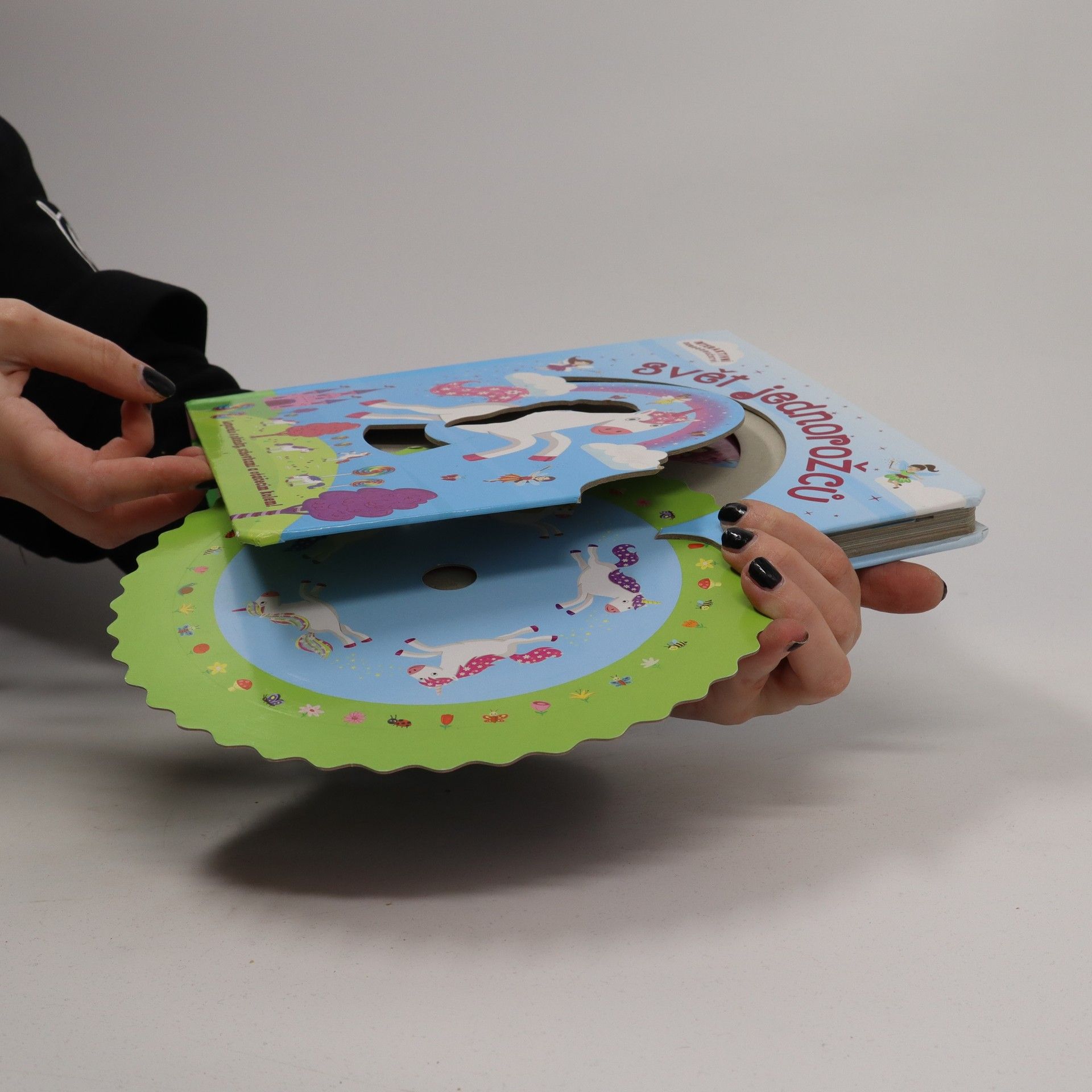 Knížka z duhového světa jednorožců s pohyblivými prvky.