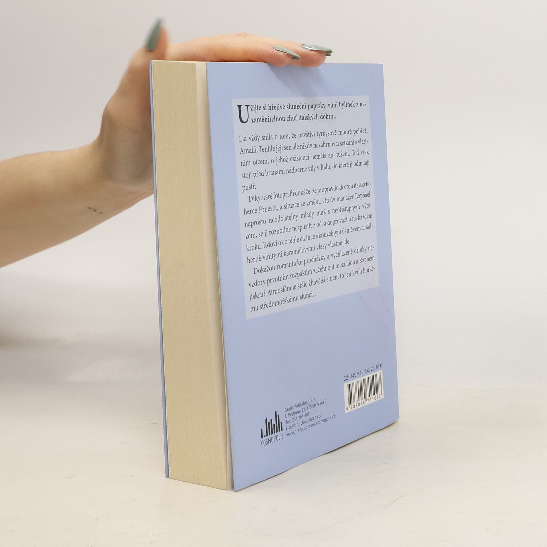 Lia vždy snila o tom, že navštíví tyrkysově modré pobřeží Amalfi. Tenhle její sen ale nikdy nezahrnoval setkání s vlastním otcem, o jehož existenci neměla ani tušení. Teď však stojí před branami nádherné vily v Itálii, do které ji odmítají pustit. Díky staré fotografii dokáže,že je opravdu dcerou italského herce Ernesta, a situace se změní. Otcův manažer Raphael, naprosto neodolatelný mladý muž s nepřístupným výrazem, se ji rozhodne nespustit z očí a doprovází ji na každém kroku. Kdoví o co téhle cizince s kouzelným úsměvem a nádherně vlnitými karamelovými vlasy vlastně jde. Dokážou romantické procházky a vychlazené drinky i přes počáteční rozpaky zažehnout mezi Liou a Raphem jiskru? Atmosféra je stále žhavější a není to jen kvůli horkému středomořskému slunci.