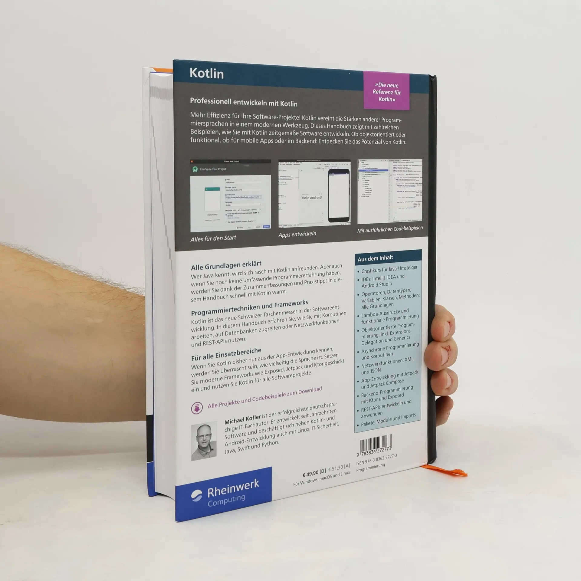 Kotlin wird als vielseitiges Werkzeug in der Softwareentwicklung vorgestellt, das die Vorteile verschiedener Programmiersprachen kombiniert. Das Handbuch von Michael Kofler bietet einen tiefen Einblick in die Sprachfeatures und vermittelt, wie man moderne Software entwickelt, sei es für mobile Apps oder Backend-Geschäftslogik. Es deckt sowohl objektorientierte als auch funktionale Programmieransätze ab und richtet sich an Entwickler, die ihre Kenntnisse erweitern möchten.