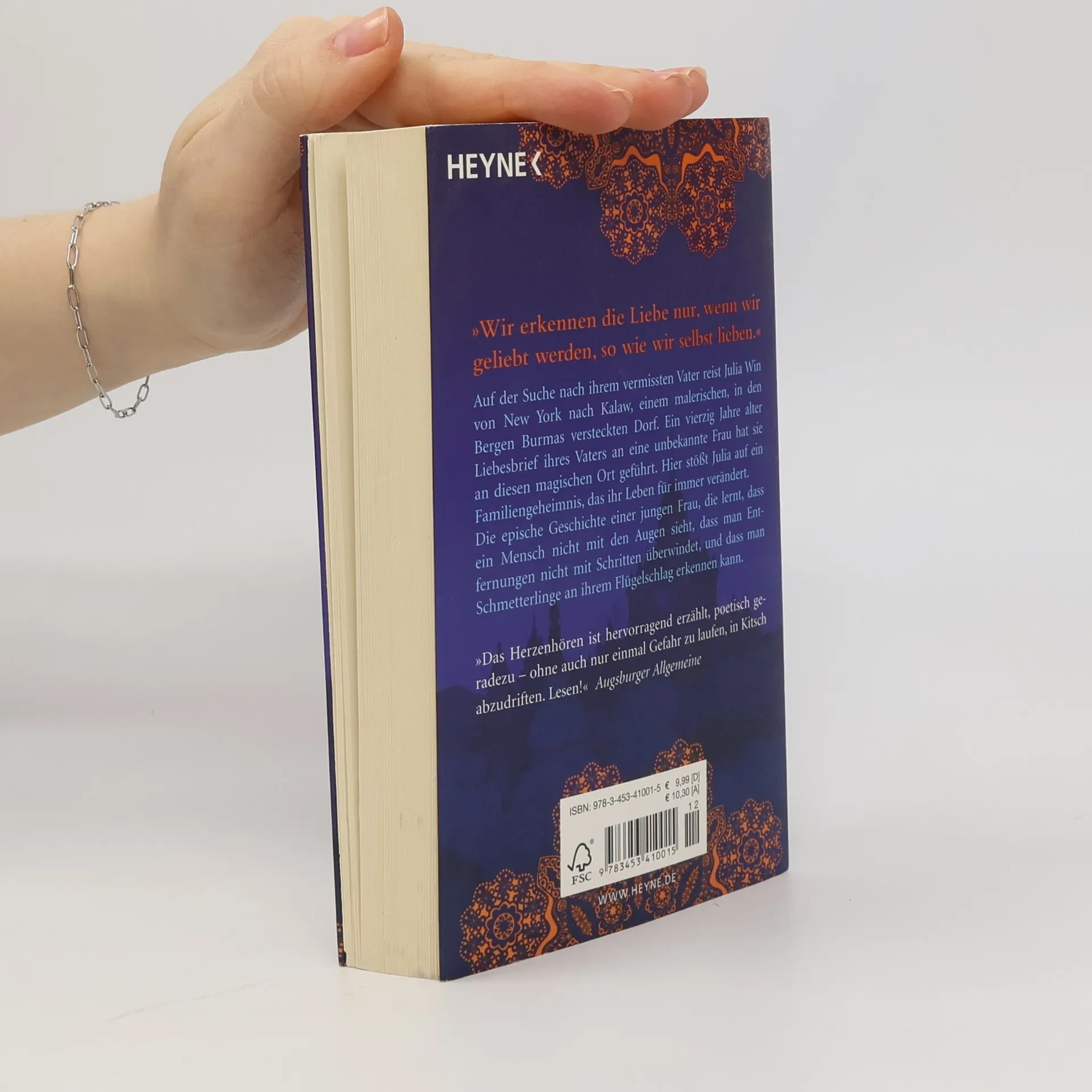 Eine der großen Liebesgeschichten unserer Zeit, die schon Hunderttausende Leserinnen begeisterte und stetig neue Leser findet: Die Suche nach ihrem vermissten Vater führt Julia Win von New York nach Kalaw, einem malerischen, in den Bergen Burmas versteckten Dorf. Ein vierzig Jahre alter Liebesbrief ihres Vaters an eine unbekannte Frau hat sie an diesen magischen Ort geführt. Hier findet sie nicht nur einen Bruder, von dem sie nichts wusste, sondern stößt auch auf ein Familiengeheimnis, das ihr Leben für immer verändert.