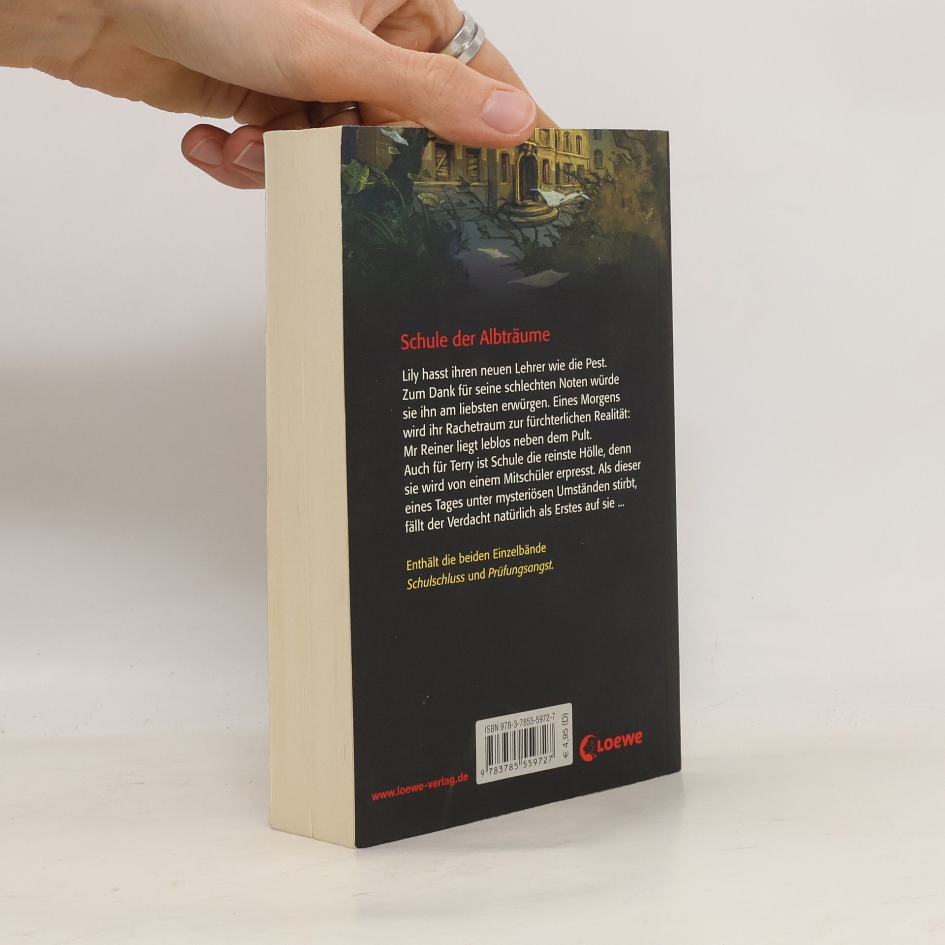 Schule der AlbträumeLily hasst ihren neuen Lehrer wie die Pest. Zum Dank für seine schlechten Noten würde sie ihn am liebsten erwürgen. Eines Morgens wird ihr Rachetraum zur fürchterlichen Realität: Mr Reiner liegt leblos neben seinem Pult.Auch für Terry ist die Schule die reinste Hölle, denn sie wird von einem Mitschüler erpresst. Als dieser eines Tages unter mysteriösen Umständen stirbt, fällt der Verdacht natürlich als Erstes auf sie...Enthält die beiden Einzelbände "Schulschluss" und "Prüfungsangst"