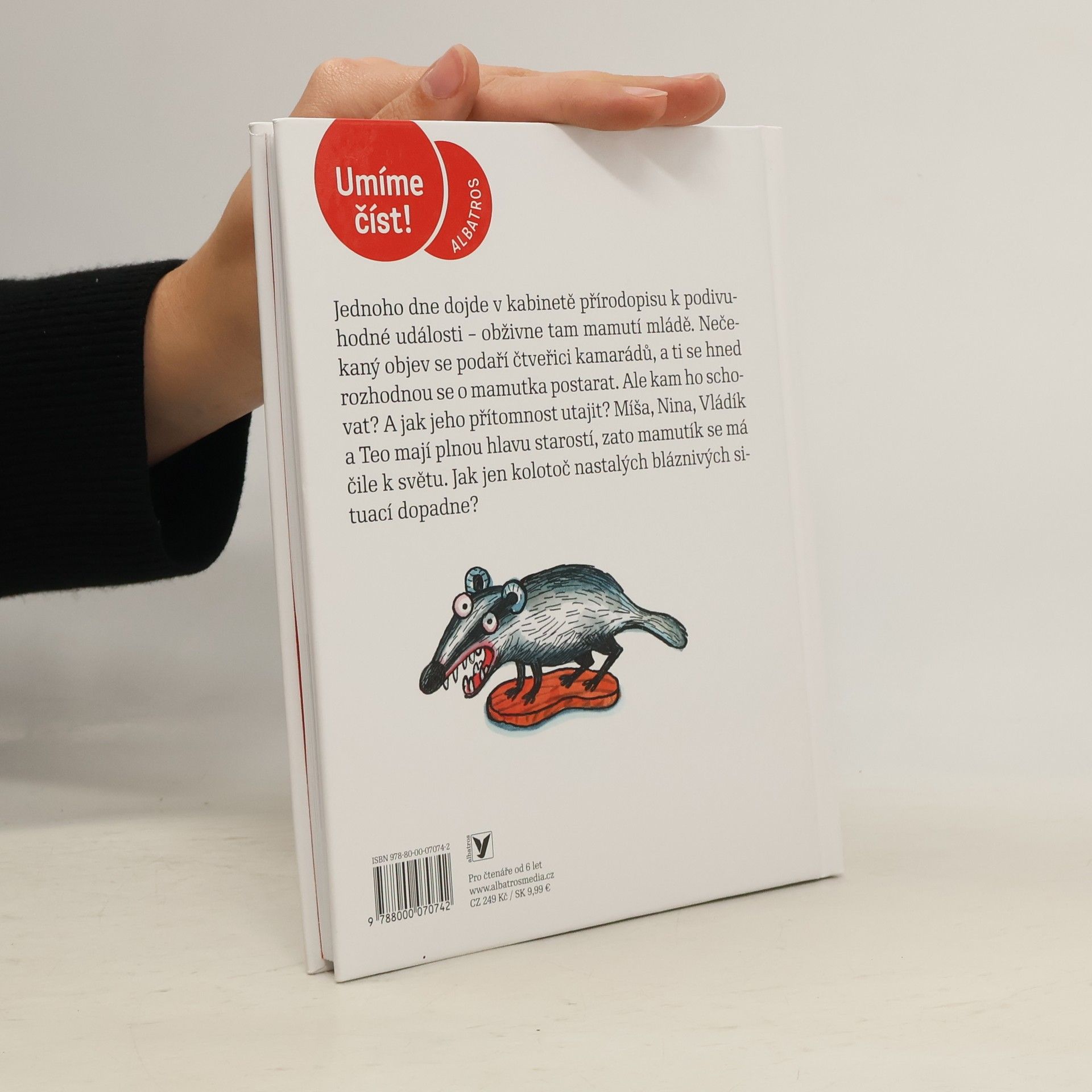 Jednoho dne dojde v kabinetě přírodopisu k podivuhodné události – obživne tam mamutí mládě. Nečekaný objev se podaří čtveřici kamarádů, a ti se hned rozhodnou se o mamutka postarat. Ale kam ho schovat? Míša, Nina, Vládík a Teo mají plnou hlavu starostí, zato mamutík se má čile k světu. Jak to všechno dopadně? Bavte se a luštěte s přiloženým pracovním sešitem. Pro toho, kdo pěkně přečetl knížku, to bude hračka!
