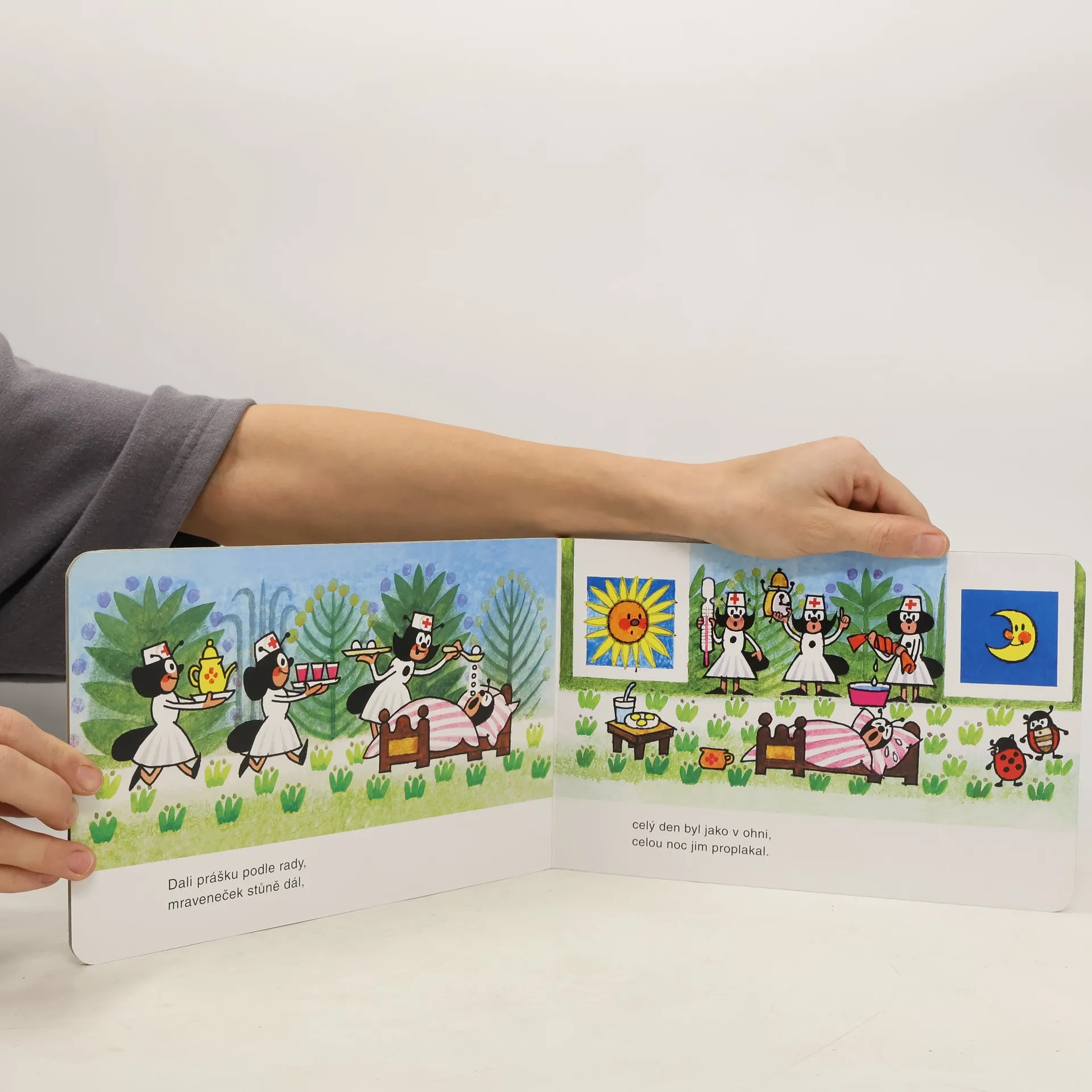 Veršovaný příběh s dobrým koncem o tom, jak polámaného mravenečka nevyléčí prášky mravenčího doktora, ale soucit a porozumění dobrých přátel, vychází jako oblíbené minileporelo ilustrované autorem Krtečka.