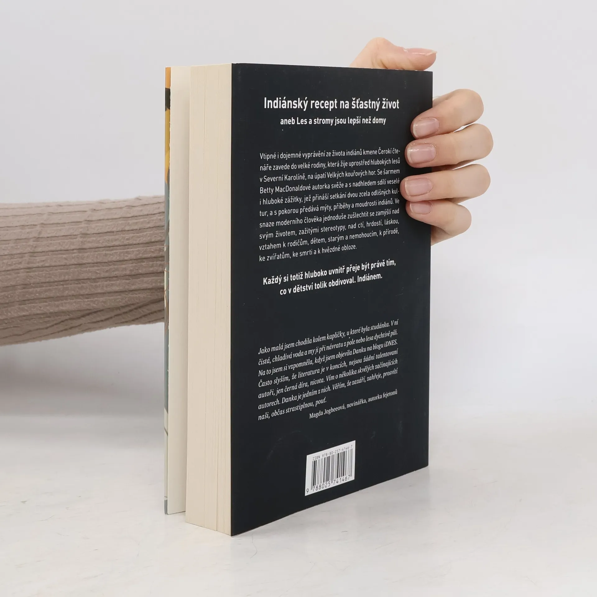 Danka Štoflová, autorka úspěšného blogu na portálu iDNES, představuje knižní podobu vtipně a s nadhledem vyprávěných příběhů ze života indiánů kmene Čerokí o velké rodině, muži a dětech, společně žijících na půdě, která indiánům po staletí patří, uprostřed hlubokých lesů v Severní Karolíně, na úpatí pohoří Great Smoky Mountains. Vtipně, svěže a poutavě se šarmem Betty MacDonaldové předává mýty, životní postoje a jednoduché moudrosti okořeněné sžíváním se s naprosto odlišnou, evropskou kulturou v osobě samotné autorky. S pokorou vypráví příběhy indiánů a ve snaze moderního člověka jednoduše zušlechtit se zamýšlí nad svým životem, zažitými stereotypy, nad ctí, hrdostí, láskou, vztahem k rodičům, dětem, starým a nemohoucím, k přírodě, ke zvířatům, ke smrti a k hvězdné obloze.Každý si totiž hluboko uvnitř, přeje být právě tím, co v dětství tolik obdivoval. Indiánem.