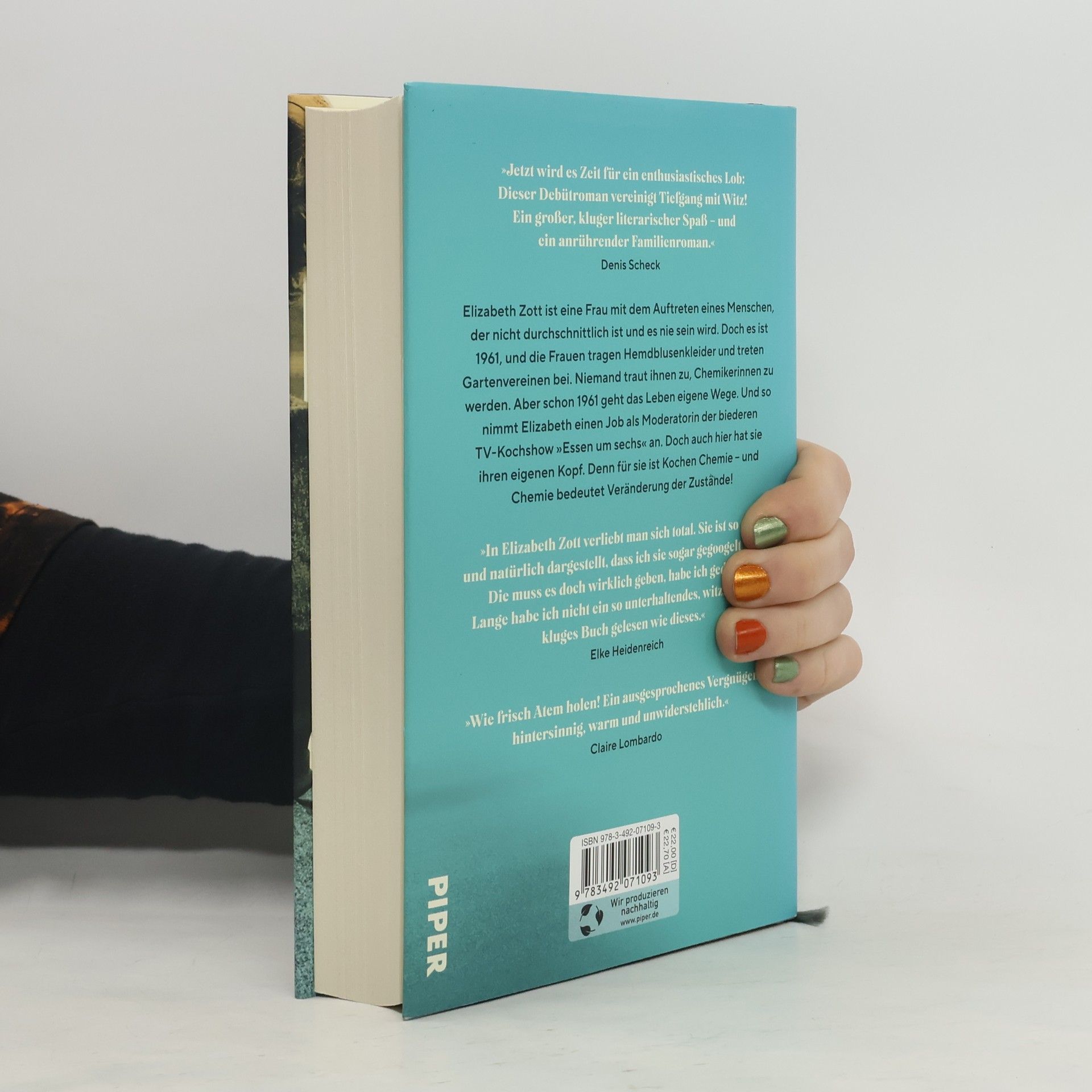 Etzt wird es Zeit für ein enthusiastisches Lob: Dieser Debütroman vereinigt Tiefgang mit Witz! Ein großer, kluger literarischer Spaß - und ein anrührender Familienroman.« Denis ScheckElizabeth Zott ist eine Frau mit dem Auftreten eines Menschen, der nicht durchschnittlich ist und es nie sein wird. Doch es ist 1961, und die Frauen tragen Hemdblusenkleider und treten Gartenvereinen bei. Niemand traut ihnen zu, Chemikerinnen zu werden. Aber schon 1961 geht das Leben eigene Wege. Und so nimmt Elizabeth einen Job als Moderatorin der biederen TV-Kochshow »Essen um sechs« an. Doch auch hier hat sie ihren eigenen Kopf. Denn für sie ist Kochen Chemie - und Chemie bedeutet Veränderung der Zustände!»In Elizabeth Zott verliebt man sich total. Sie ist so toll und natürlich dargestellt, dass ich sie sogar gegoogelt habe: Die muss es doch wirklich geben, habe ich gedacht! Lange habe ich nicht ein so unterhaltendes, witziges und kluges Buch gelesen wie dieses.« Elke Heidenreich»Wie frisch Atem holen! Ein ausgesprochenes Vergnügen - hintersinnig, warm und unwiderstehlich [Buchzentrum]