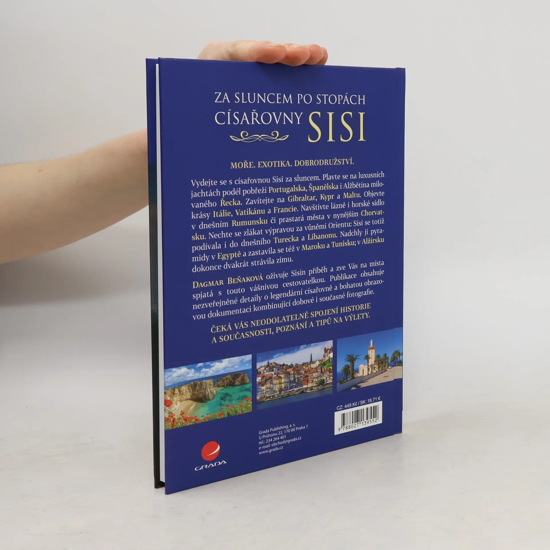 MOŘE. EXOTIKA. DOBRODRUŽSTVÍ.Vydejte se s císařovnou Sisi za sluncem. Plavte se na luxusních jachtách podél pobřeží Portugalska, Španělska i Alžbětina milovaného Řecka. Zavítejte na Gibraltar, Kypr a Maltu. Objevte krásy Itálie, Vatikánu a Francie. Navštivte lázně i horské sídlo v dnešním Rumunsku či prastará města v nynějším Chorvatsku. Nechte se zlákat výpravou za vůněmi Orientu: Sisi se totiž podívala i do dnešního Turecka a Libanonu. Nadchly ji pyramidy v Egyptě a zastavila se též v Maroku a Tunisku; v Alžírsku dokonce dvakrát strávila zimu.Dagmar Beňaková oživuje Sisin příběh a zve Vás na místa známá i neznámá, všechna však spjatá s touto vášnivou cestovatelkou a svobodomyslnou rebelkou. Publikace obsahuje další nezveřejněné detaily o legendární císařovně a bohatou obrazovou dokumentaci kombinující dobové i současné fotografie.ČEKÁ VÁS NEODOLATELNÉ SPOJENÍ HISTORIE A SOUČASNOSTI, POZNÁNÍ A TIPŮ NA VÝLETY