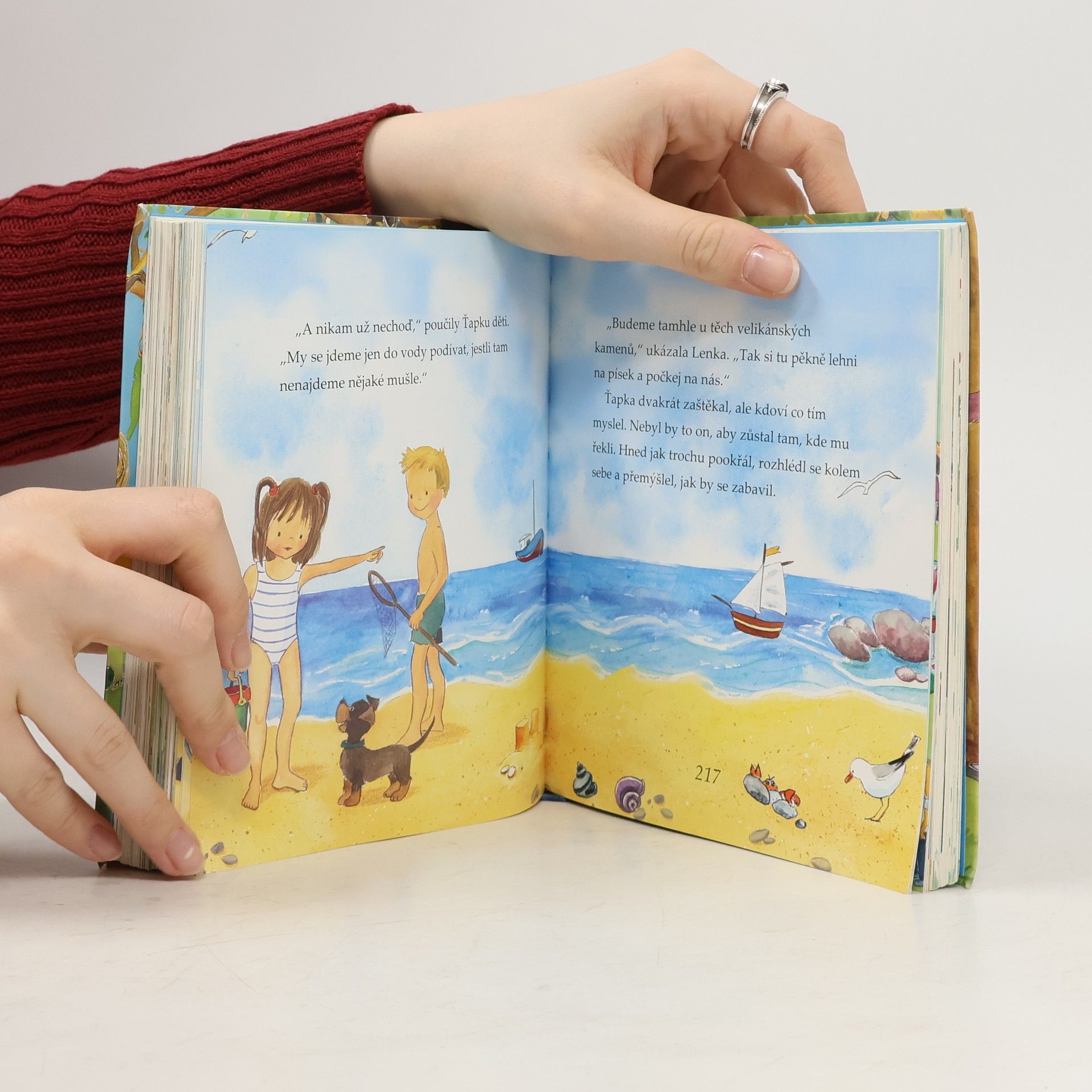 Pohádkový skřítek vypráví dětem na dobrou noc bajky a pohádky a příběhy pejska Ťapky, který se dostane do různých pohádkových prostředí a zažije nejedno dobrodružství. Čtení s většími písmeny pro školáky.