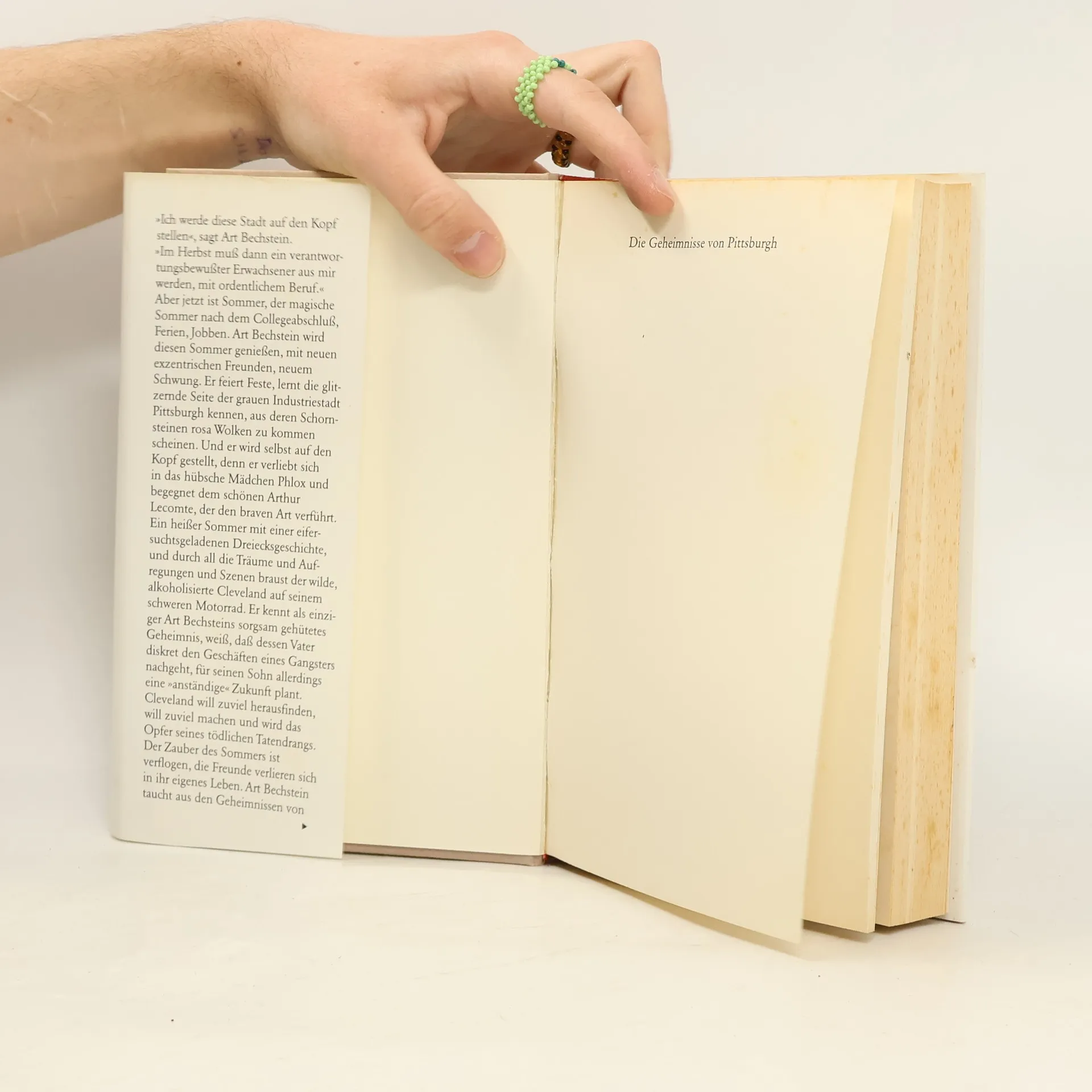 Nach dem Sommer soll Art >>erwachsen<< werden und seine Turnschuhe gegen seriöse Lederschuhe tauschen - doch vorher will er leben. Er begegnet der schönen Phlox, dem verwirrenden Lecomte und dem Geldeintreiber Cleveland, verliert seine Ideale und entdeckt ungeahnte Gefühle. Und so kommt er ihnen langsam auf die Spur: den Geheimnissen von Pittsburgh und denen des Lebens.