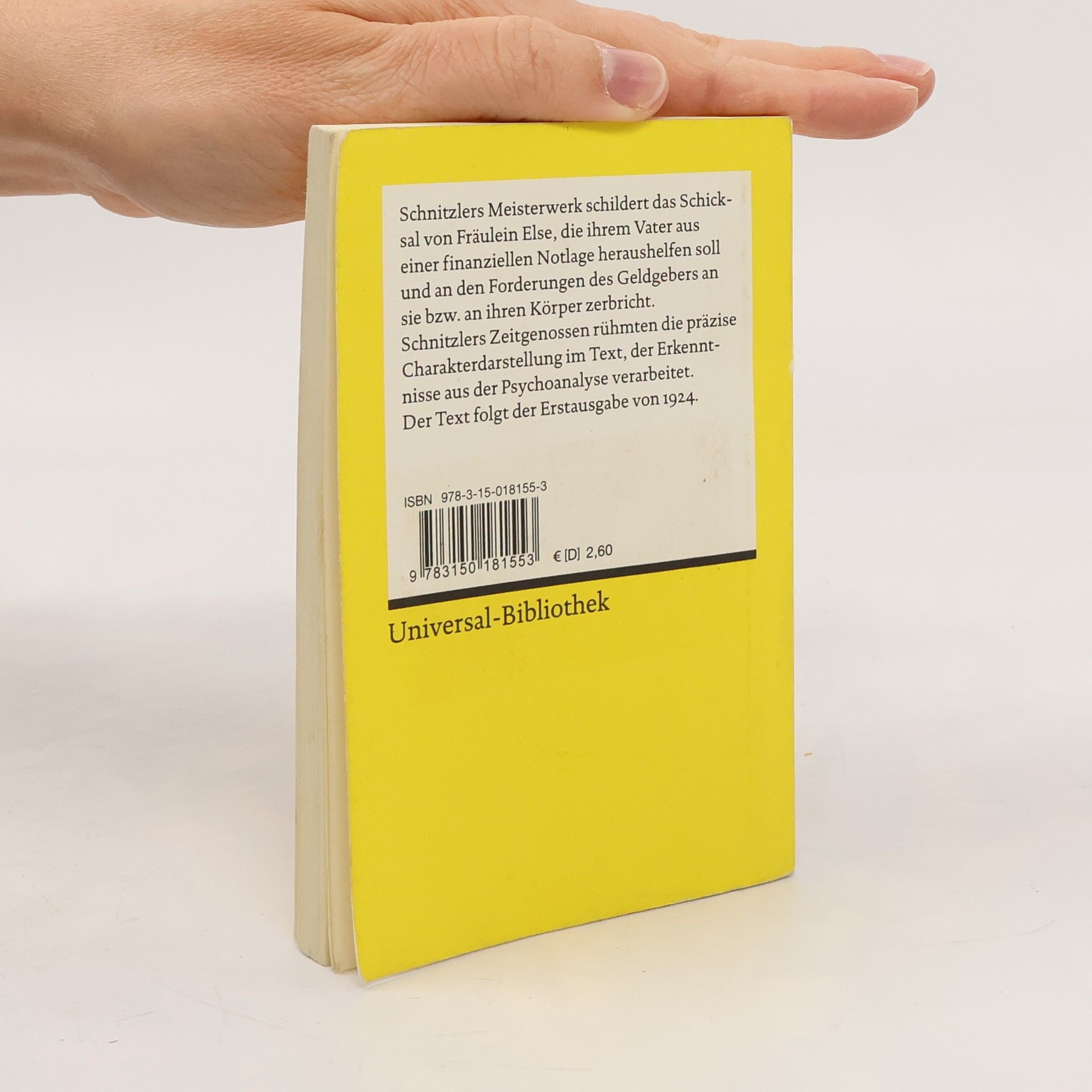 Arthur Schnitzlers wohl berühmteste Schilderung eines Frauenschicksals: Die neunzehnjährige Else soll ihren Vater vor dem drohenden Bankrott retten und zerbricht an den Forderungen des Geldgebers. Zeitgenossen des Autors rühmten die präzise Charakterdarstellung, die Erkenntnisse aus der Psychoanalyse verarbeitet.