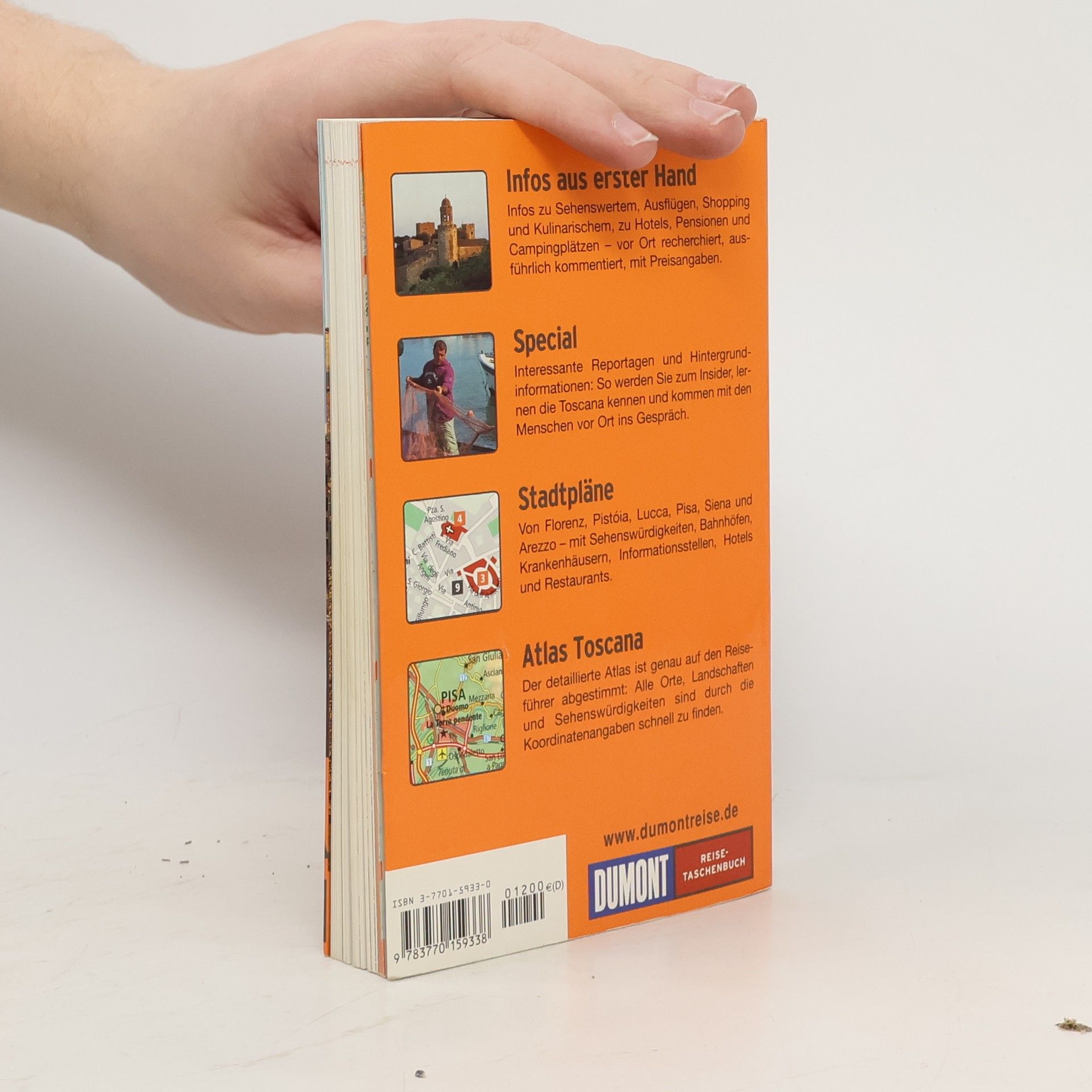 Die mittelitalienische Region Toscana ist wegen ihrer vielfältigen Landschaften, der hervorragenden Küche und der weltberühmten Weine bei Kulturreisenden und Genießern das Sehnsuchts-Land Nummer eins. Zu den Highlights zählen die berühmtesten Kunstzentren Italiens, allen voran Florenz und Siena, Pisa und Lucca, aber auch solche Kleinodien wie San Gimignano, Montepulciano und Montalcino. Gewusst wo: Jedes DUMONT Reise- Taschenbuch enthält einen mehrseitigen Atlas. Reiseführer-Text und Karten sind durch Seiten- und Koordinatenangaben auf praktische Weise miteinander verknüpft - schnelles Auffinden ist garantiert! Noch mehr Tipps: Ausgewählte Tipps mit Preisangaben zu Unterkünften und viele kommentierte Adressen zu Essen & Trinken, Shopping, Nachtleben sowie Sport & Spaß machen den Urlaub zum Genuss. Nützliches Leitsystem durch die Adressenvielfalt sind die Piktogramme. Tipps für Ihren Urlaub: Wann ist die beste Reisezeit? Lieber pauschal oder doch individuell? Wo sind die bekanntesten Sehenswürdigkeiten? Das Kapitel Tipps für Ihren Urlaubs beantwortet kompetent die wichtigsten Fragen zur Vorbereitung und Orientierung!