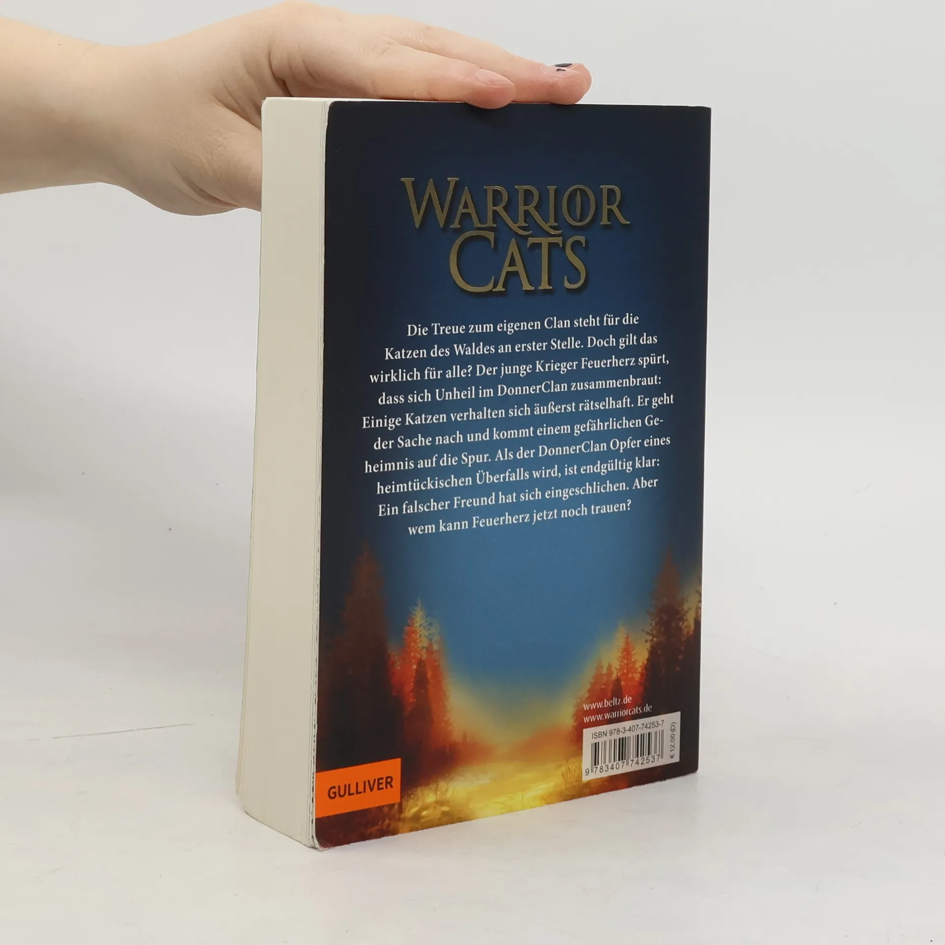 »Auch der dritte Band der Warrior Cats begeistert Jungen und Mädchen gleichermaßen.« Wir Eltern »Fantasy der ungewöhnlichen Sorte.« Buchjournal »Man kann sich der spannenden Geschichten um die Clan-Katzen nicht entziehen: Jeder Roman fesselt und lässt den Leser nicht mehr los.« Abenteuer & Phantastik Die Treue zum eigenen Clan steht für die Katzen des Waldes an erster Stelle. Doch gilt das wirklich für alle? Der junge Krieger Feuerherz spürt, dass sich Unheil im DonnerClan zusammenbraut: Einige Katzen verhalten sich äußerst rätselhaft. Er geht der Sache nach und kommt einem gefährlichen Geheimnis auf die Spur. Als der DonnerClan Opfer eines heimtückischen Überfalls wird, ist endgültig klar: Ein Verräter muss sich in den Clan eingeschlichen haben. Wem kann Feuerherz jetzt noch trauen?