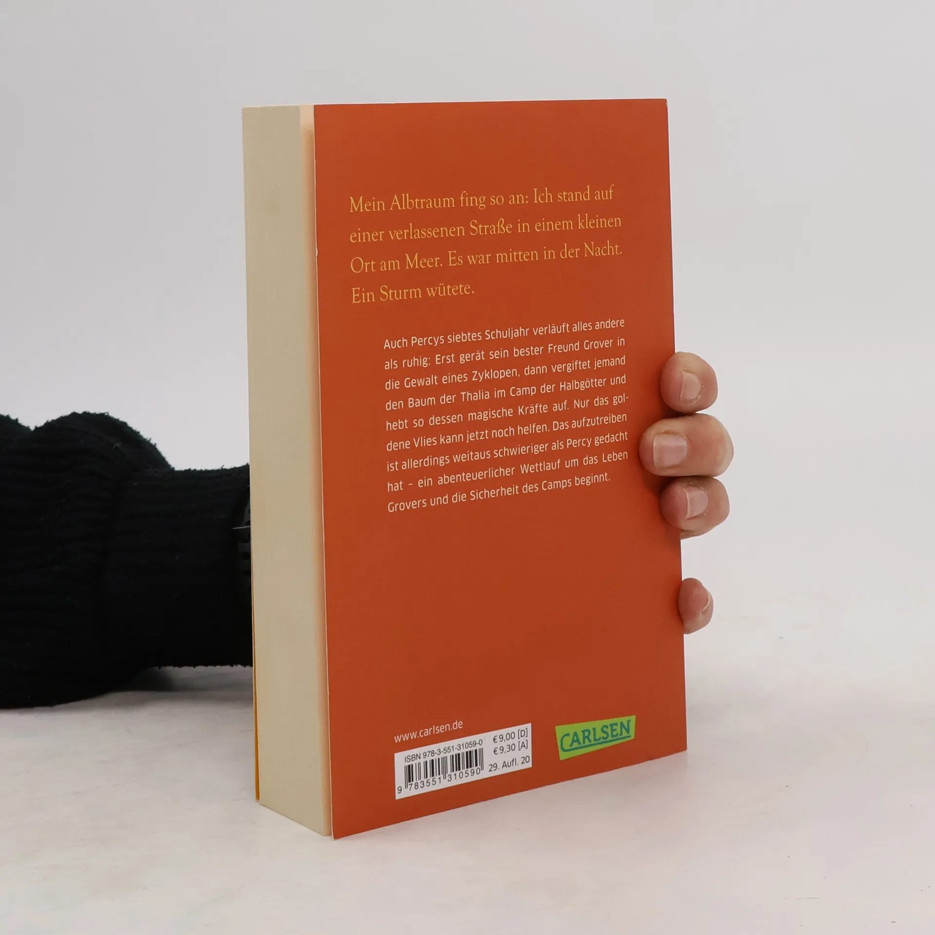 Auch Percys siebtes Schuljahr verläuft nicht wirklich ruhig: Erst gerät sein bester Freund Grover in die Gewalt eines Zyklopen, dann vergiftet jemand den Baum der Thalia im Camp der Halbgötter und hebt so dessen magische Kräfte auf. Nur das goldene Vlies kann jetzt noch helfen. Das aufzutreiben ist allerdings weitaus schwieriger als Percy gedacht hat - ein abenteuerlicher Wettlauf um das Leben Grovers und die Sicherheit des Camps beginnt.