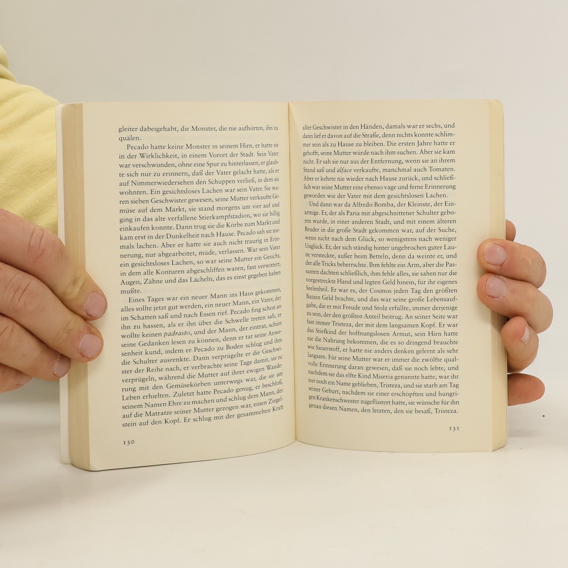 Geschichte eines Straßenkindes »Man kann fliegen, ohne sichtbare Flügel zu haben.« Nelio, ein zehnjähriges Straßenkind, erzählt um sein Leben. Er liegt mit einer Schußwunde auf dem Dach eines afrikanischen Hauses und weiß, daß er sterben wird, sobald seine Geschichte zu Ende ist. Er erzählt, wie die Banditen sein Dorf überfielen, seine Schwester massakrierten und ihn zwingen wollten, seine Verwandten zu töten. Wie er floh, den Weg in die große Stadt fand und Anführer einer Bande von Straßenkindern wurde. Vor allem aber erzählt er vom Leben dieser schwarzen Kinder. Von Mandioca, der Tomaten und Zwiebeln in seinen Taschen wachsen läßt, und von Deolinda, einem Albinomädchen, das die sexuellen Phantasien der Jungen erregt. Vom Geheimnis des Reichtums erzählt er, einer vertrockneten Eidechse in einem gestohlenen Aktenkoffer und einem nächtlichen Besuch beim Präsidenten. Und vom Paradies, das auf keiner Landkarte verzeichnet ist und das man doch finden kann.