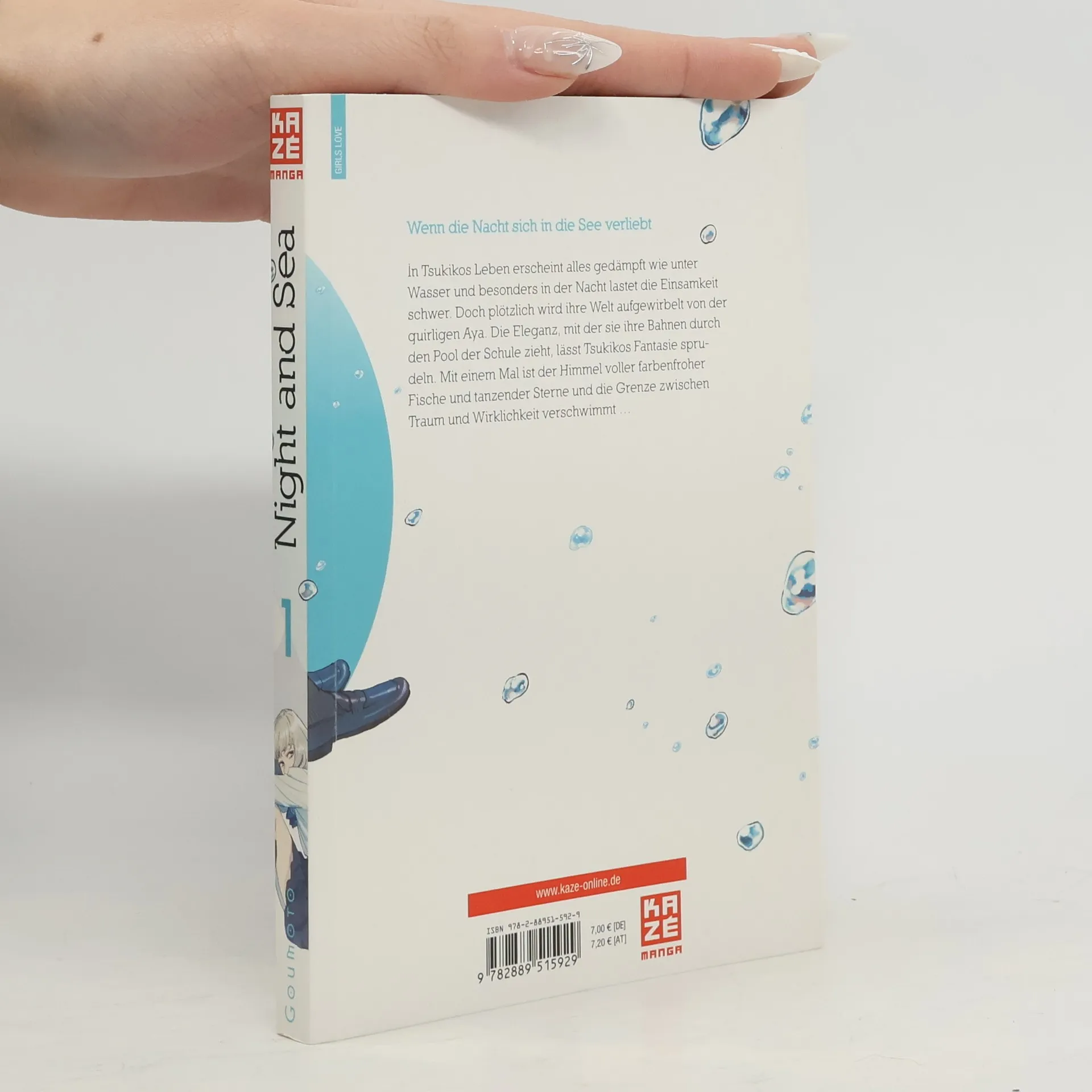 In Tsukikos Leben erscheint alles gedämpft wie unter Wasser und besonders in der Nacht lastet die Einsamkeit schwer. Doch plötzlich wird ihre Welt aufgewirbelt von der quirligen Aya. Die Eleganz, mit der sie ihre Bahnen durch den Pool der Schule zieht, lässt Tsukikos Fantasie sprudeln. Mit einem Mal ist der Himmel voller farbenfroher Fische und tanzender Sterne und die Grenze zwischen Traum und Wirklichkeit verschwimmt …