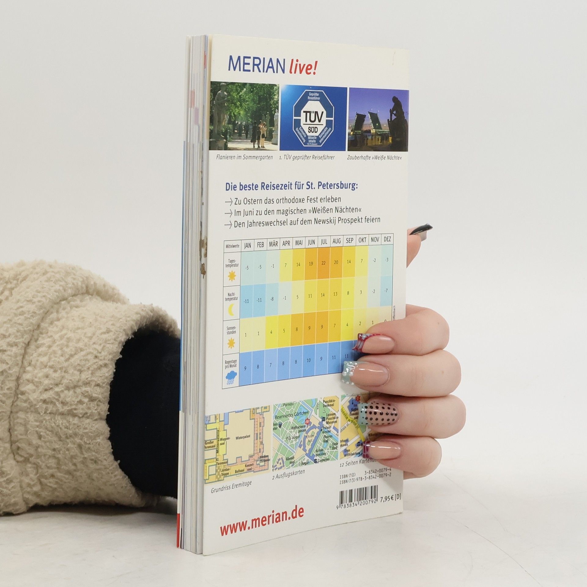 Sie suchen eine bezahlbare Unterkunft im Zentrum oder ein wunderschönes Hotel mit Geschichte? Sie möchten abends ein Diner á la russe mit köstlichen Sakuski genießen? Und nach dem Essen zeiht es Sie ins Ballett oder in einen Avantgarde-Club? Dieser St. Petersburg-Führer gibt Ihnen nützliche Tipps und ausgewählte Adressen an die Hand, damit Ihr Aufenthalt zu einem Erlebnis wird. Gitternetzangaben bei allen Adressen, der große Faltplan sowie der Metro-Plan machen die Orientierung leicht. Petersburger Highlights sind auf dieser Karte besonders hervorgehoben. Wer jedoch St. Petersburg aus einer nicht ganz gewöhnlichen Perspektive kennen lernen will, sollte sich von den Extra-Touren leiten lassen.