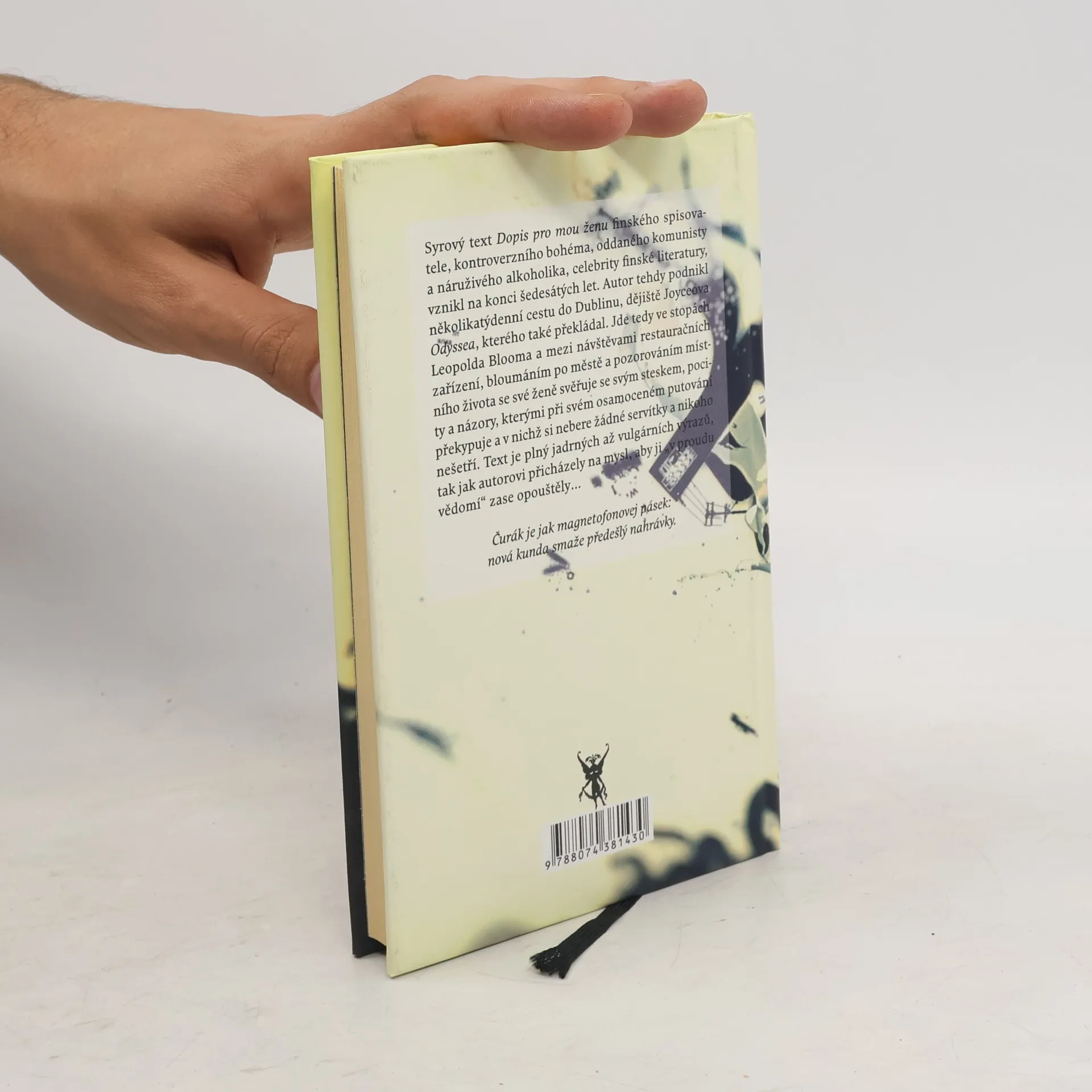 Syrový text Dopis pro mou ženu finského spisovatele, kontroverzního bohéma, oddaného komunisty a náruživého alkoholika, celebrity finské literatury, vznikl na konci šedesátých let. Autor tehdy podnikl několikatýdenní cestu do Dublinu, dějiště Joyceova Odyssea, kterého také překládal. Jde tedy ve stopách Leopolda Blooma a mezi návštěvami restauračních zařízení, bloumáním po městě a pozorováním místního života se své ženě svěřuje se svým steskem, pocity a názory, kterými při svém osamoceném putování překypuje a v nichž si nebere žádné servítky a nikoho nešetří. Text je plný jadrných až vulgárních výrazů, tak jak autorovi přicházely na mysl, aby ji „v proudu vědomí“ zase opouštěly...