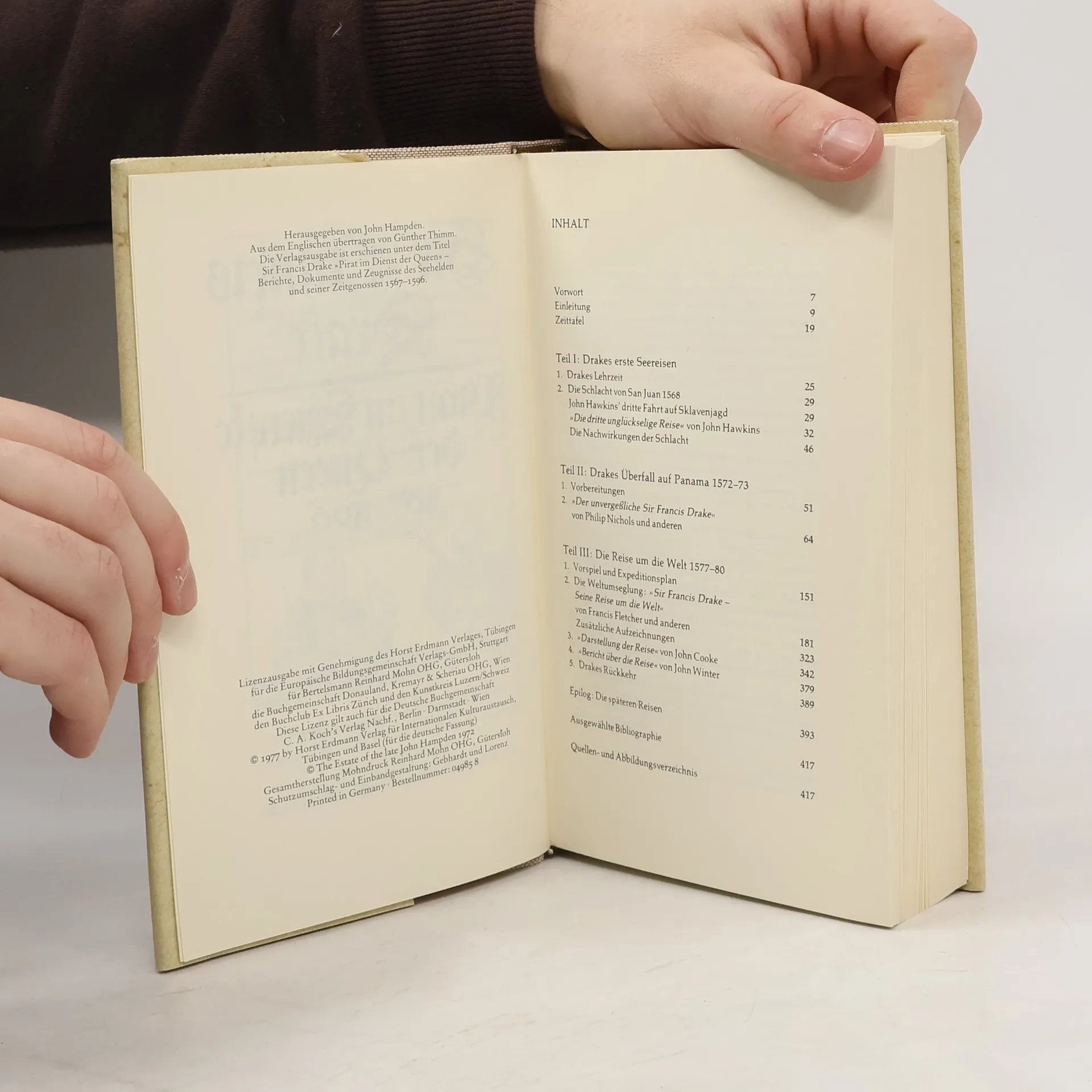 "Auf allen Gebieten der Seefahrt war er bei weitem geschickter als je einer vor ihm.(...). Sein Name versetzte Franzosen, Spanier, Portugiesen und Indianer in Schrecken." Er war der berühmteste Seefahrer des elisabethanischen Zeitalters und ein erbitterter Gegner Spaniens. Doch was ist wahr und was Legende an seiner Karriere, seinen Raubzügen und Kämpfen gegen die Spanier? Die in diesem Band abgedruckten Augenzeugenberichte lassen den bewunderten Zeitgenossen Shakespeares und seine waghalsigen Abenteuer lebendig werden. Kaum eine Figur in der Geschichte der Seefahrt ist so faszinierend wie Sir Francis Drake. Der englische Pirat und Erdumsegler wurde bereits zu Lebzeiten als Volksheld gefeiert. In dieser Ausgabe werden seine Abenteuer erneut lebendig: die Schlacht von San Juan, die Sklavenjagd mit John Hawkins, der Überfall auf Panama und die Reise um die Welt von 1577-1580 mit der "Golden Hind" - der ersten britischen Weltumsegelung. Die Berichte stellen auch kritische Fragen. Es ist die Chronik eines abenteuerlichen Lebens in einem großen Jahrhundert. Deutlich wird, dass Drake nicht nur ein genialer Seefahrer und kühner Freibeuter war, sondern auch einen wesentlichen Beitrag zu den großen Entdeckungen seiner Zeit leistete. Für seine Verdienste wurde er am 04. April 1581 von Elisabeth I. zum Ritter geschlagen.
