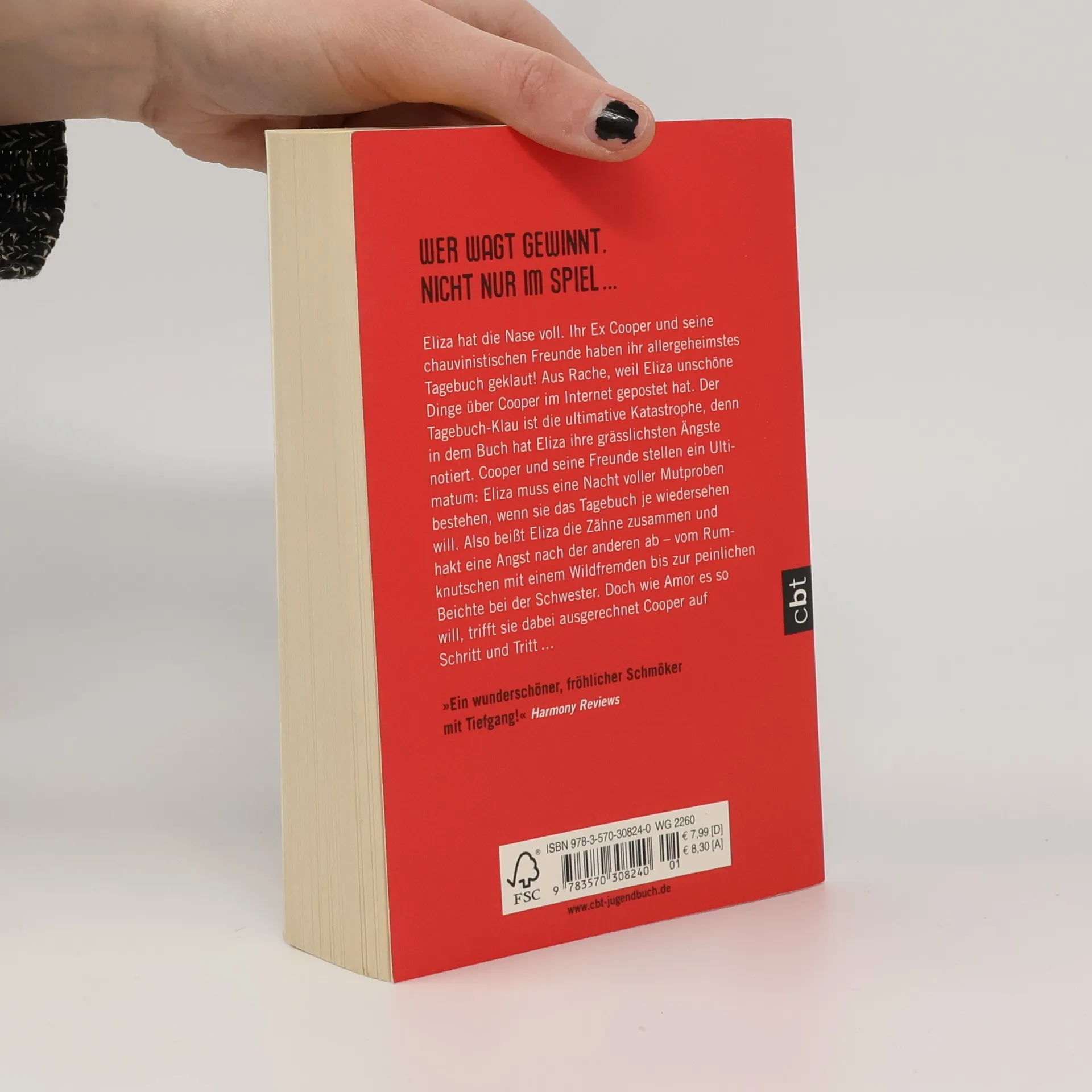 Wer wagt gewinnt – nicht nur im Spiel ... Eliza hat die Nase voll. Ihr Ex Cooper und seine chauvinistischen Freunde haben ihr Tagebuch geklaut! Aus Rache, weil Eliza unschöne Dinge über Cooper im Internet veröffentlicht hat. Der Tagebuch-Klau ist die ultimative Katastrophe, denn dort hat Eliza ihre geheimsten Ängste notiert. Und Cooper und seine Freunde verlangen, dass Eliza eine Nacht voller Mutproben besteht, wenn sie das Tagebuch je wiedersehen will. Also beißt Eliza die Zähne zusammen und stellt sich genau den Ängsten, die sie zu Papier gebracht hat. Und wie Amor es so will, trifft sie dabei ausgerechnet Cooper auf Schritt und Tritt …