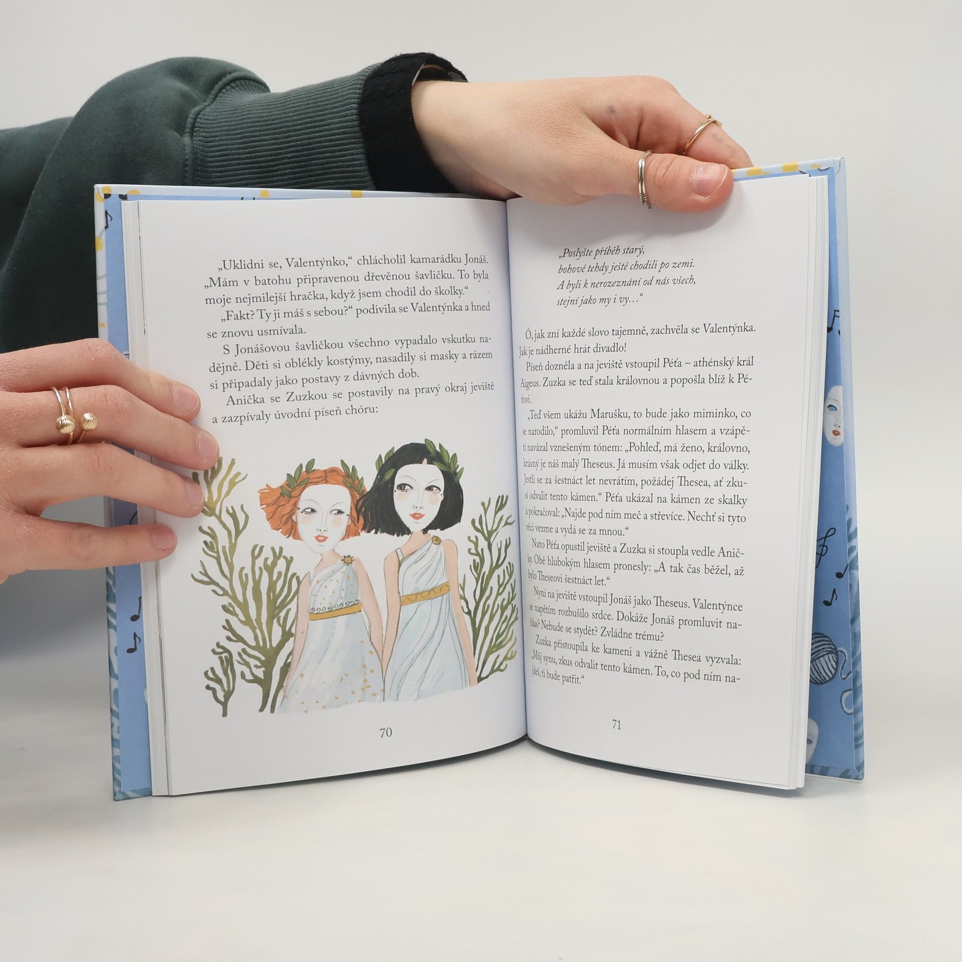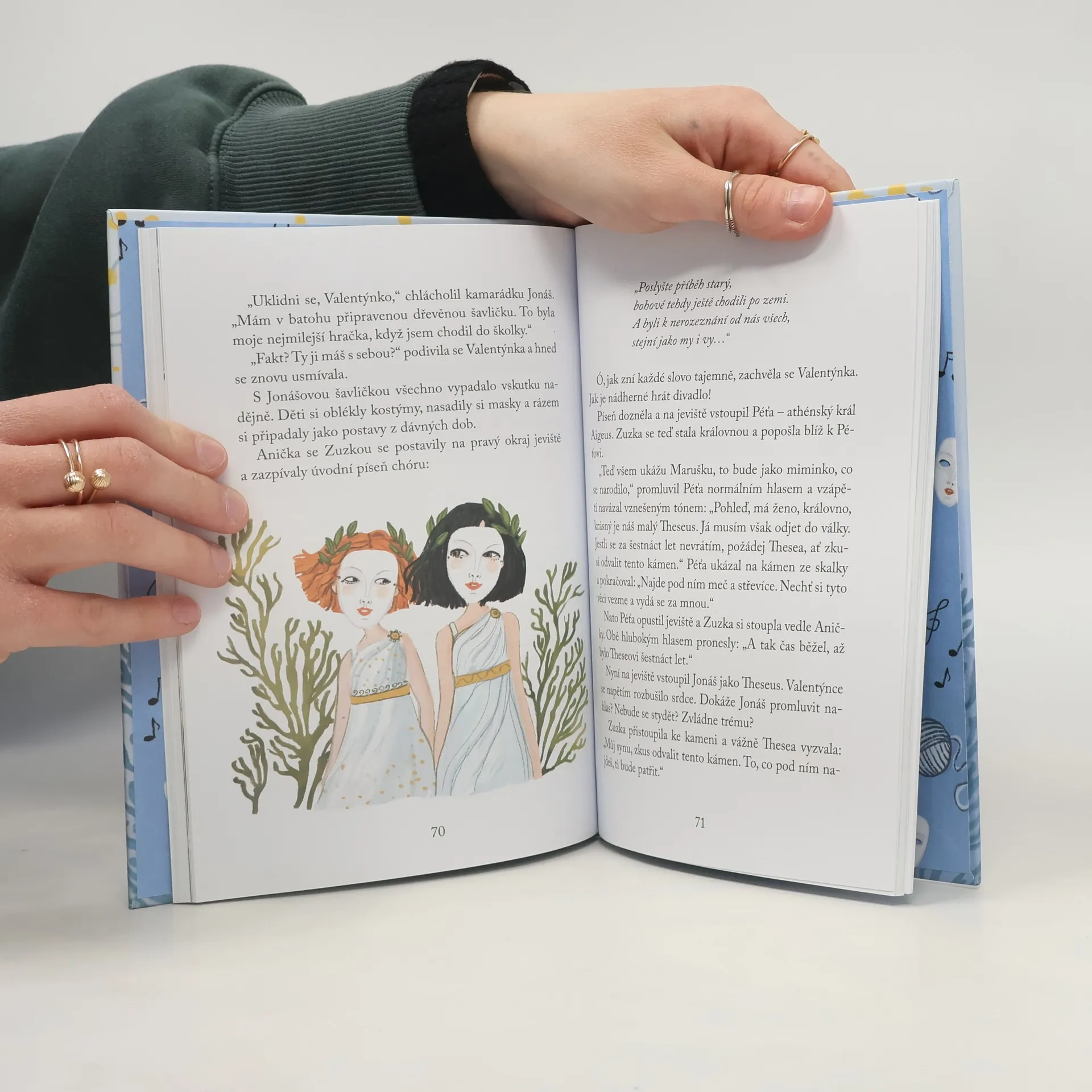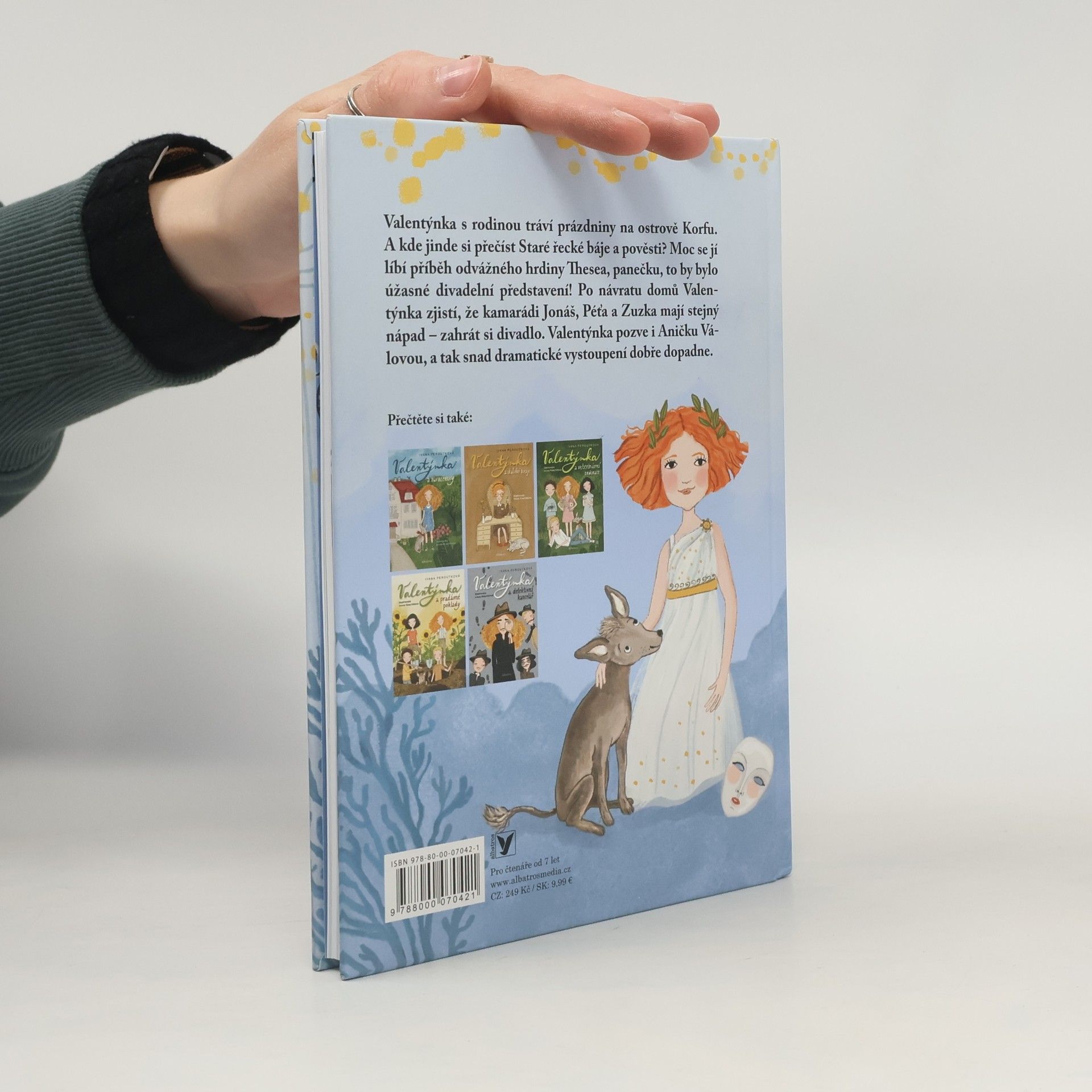 Valentýnka objevuje krásy divadla. Závěrečný díl oblíbené série. Valentýnka s rodinou tráví prázdniny na ostrově Korfu. Kde jinde si přečíst Staré řecké báje a pověsti? Nejvíc ze všech ji zaujme příběh odvážného hrdiny Thesea, který porazil netvora Minotaura. Podle jeho dobrodružství by se dalo nacvičit skvělé divadelní představení! Jakmile se Valentýnka vrátí domů, pustí se s kamarády do zkoušení. Bude mít jejich vystoupení úspěch? Když Valentýnčin gejzír nápadů i pochybností usměrní Anička Válová, určitě všechno dobře dopadne.