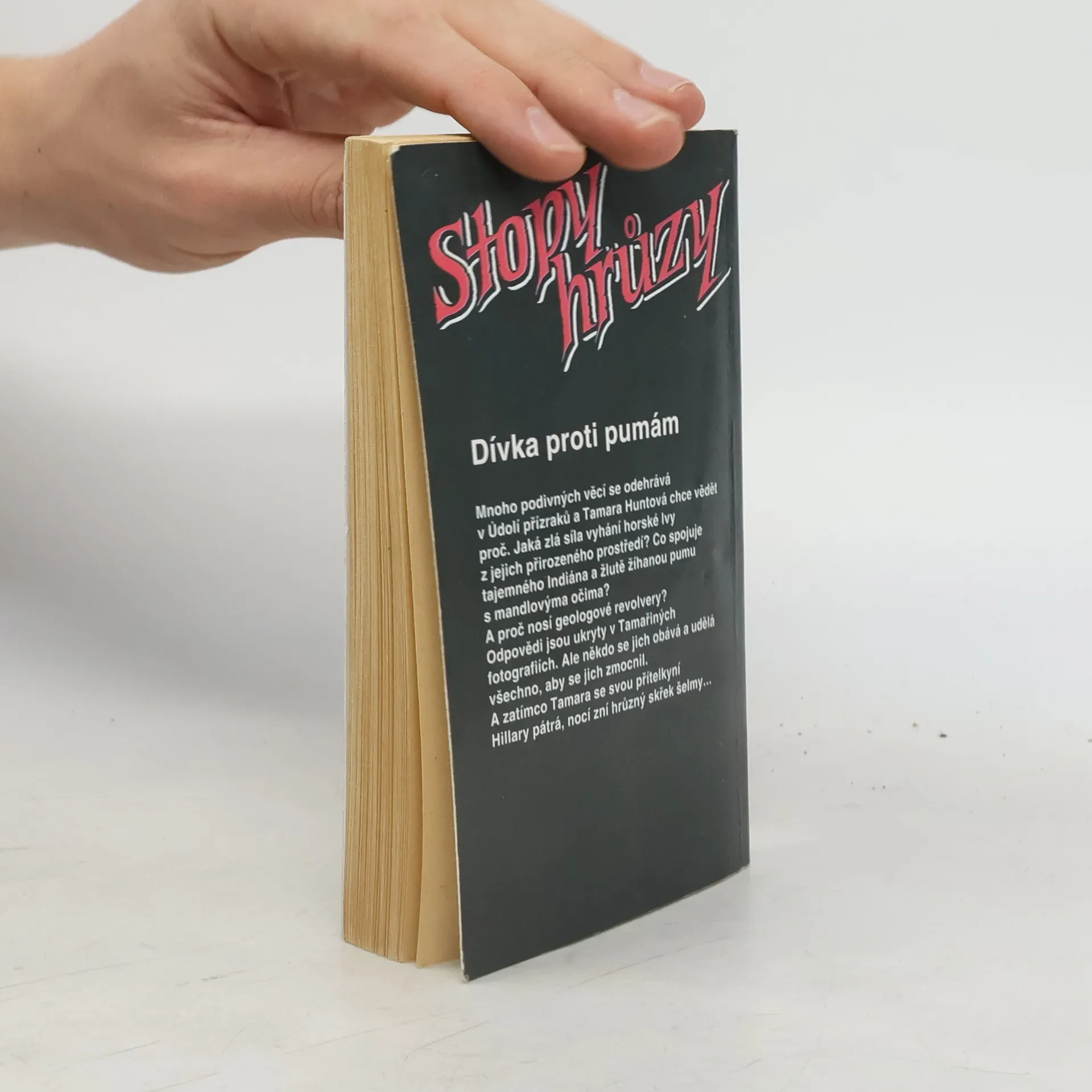 Mnoho podivných věcí se odehrává v Údolí přízraků a Tamara Huntová chce vědět proč. Jaká zlá síla vyhání horské lvy z jejich přirozeného prostředí? Co spojuje tajemného Indiána a žlutě žíhanou pumu s mandlovýma očima? A proč nosí geologové revolvery? Odpovědi jsou ukryty v Tamařiných fotografiích. Ale někdo se jich obává a udělá všechno, abych se jich zmocnil. A zatímco Tamara se svou přítelkyní Hillary pátrá, nocí zní hrůzný skřek šelmy…... celý text
