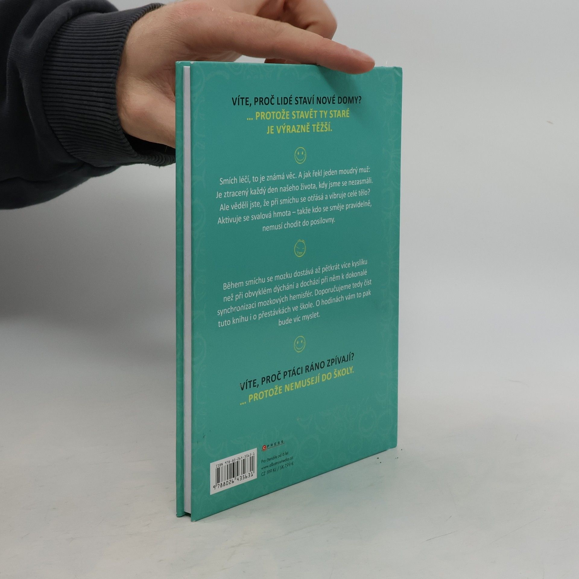 Tato kniha plná vtipů udělá radost všem. Ať už se začtete do vtipů o Pepíčkovi, ze školy, o prarodičích, z pohádek nebo dalších, pořádně se zasmějete a budete mít dobrou náladu. Věděli jste, že během smíchu se mozku dostává až 5 x více kyslíku než při obvyklém dýchání a dochází při něm k dokonalé synchronizaci mozkových hemisfér? Doporučujeme tedy číst tuto knihu i o přestávkách ve škole. O hodinách vám to pak bude víc myslet.