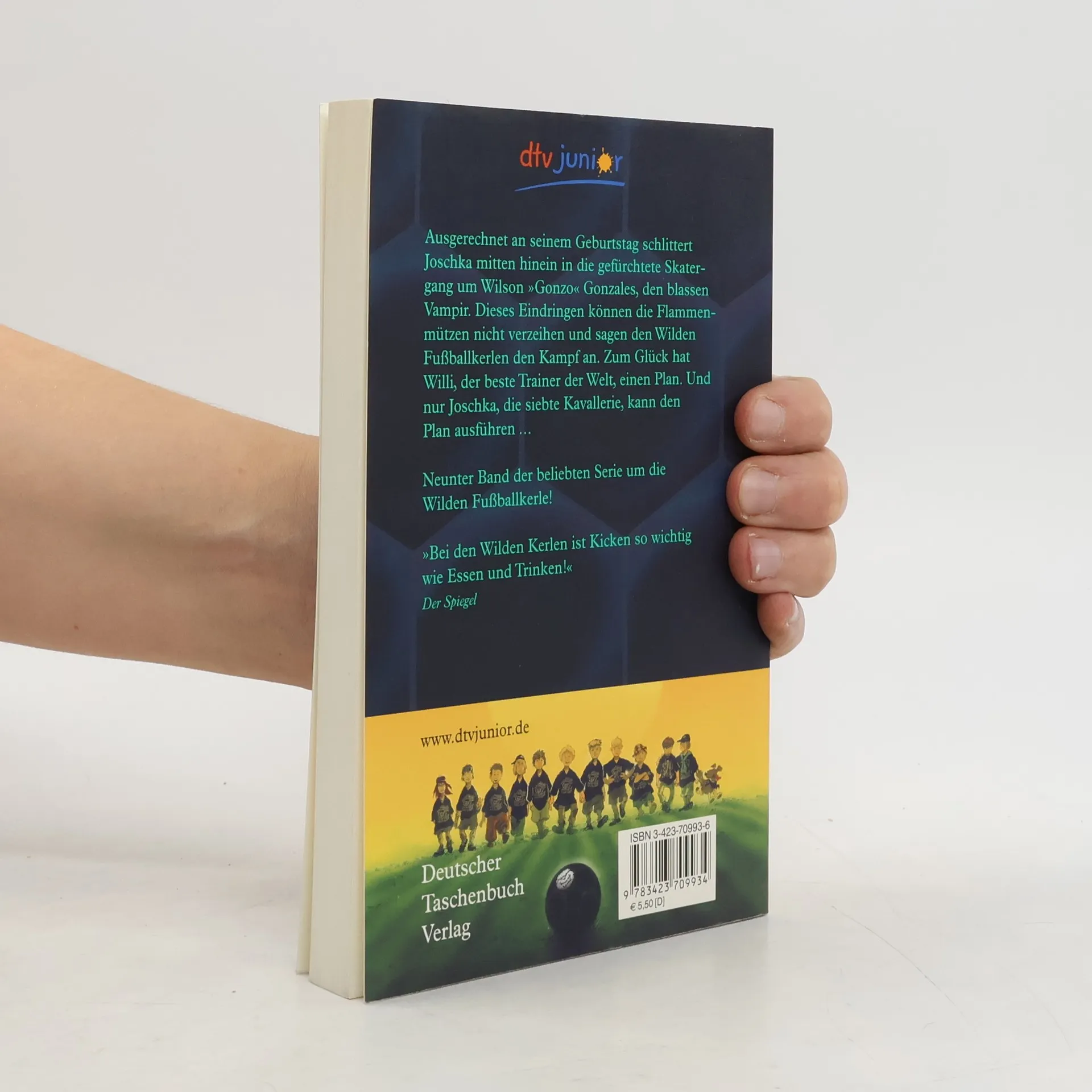 Ausgerechnet an seinem Geburtstag schlittert Joschka mitten hinein in die gefürchtete Skatergang um Wilson »Gonzo« Gonzales, den blassen Vampir. Dieses Eindringen können die Flammenmützen nicht verzeihen und sagen den Wilden Fußballkerlen den Kampf an. Zum Glück hat Willi, der beste Trainer der Welt, einen Plan. Und nur Joschka, die siebte Kavallerie, kann den Plan ausführen … »Bei den Wilden Kerlen ist Kicken so wichtig wie Essen und Trinken!« Der Spiegel