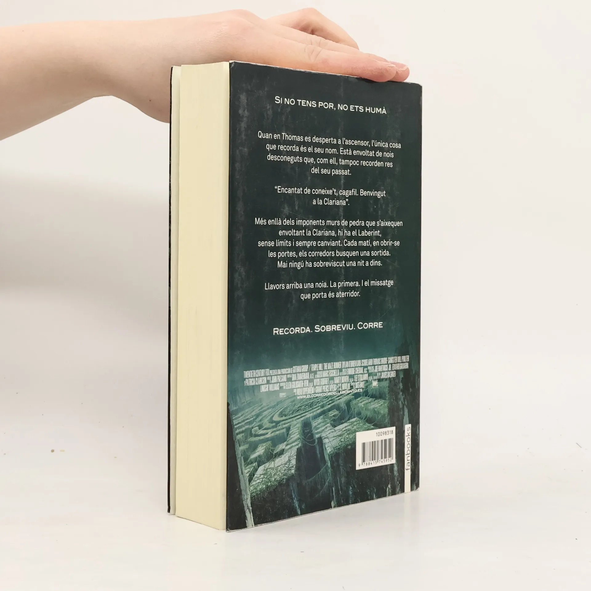 MEMORIZA. CORRE. SOBREVIVE. «Bienvenido al bosque. Verás que una vez a la semana, siempre el mismo día y a la misma hora, nos llegan víveres. Una vez al mes, siempre el mismo día y a la misma hora, aparece un nuevo chico, como tú. Siempre un chico. Como ves, este lugar está cercado por muros de piedra… Has de saber que estos muros se abren por la mañana y se cierran por la noche, siempre a la hora exacta. Al otro lado se encuentra el laberinto. De noche, las puertas se cierran… y, si quieres sobrevivir, no debes estar allí para entonces». Todo sigue un orden… y, sin embargo, al día siguiente suena una alarma. Significa que ha llegado alguien más. Para asombro de todos, es una chica. Su llegada vendrá acompañada de un mensaje que cambiará las reglas del juego. ¿Y si un día abrieras los ojos y te vieses en un lugar desconocido sin saber nada más que tu nombre? Cuando Thomas despierta, se encuentra en una especie de ascensor. No recuerda qué edad tiene, quién es ni cómo es su rostro. Sólo su nombre. De pronto, el ascensor da un zarandeo y se detiene. Las puertas se abren y una multitud de rostros le recibe. «Bienvenido al Claro -dice uno de los adolescentes-. Aquí es donde vivimos. Esta es nuestra casa. Fuera está el laberinto. Yo soy Alby; él, Newt. Y tú eres el primero desde que mataron a Nick».