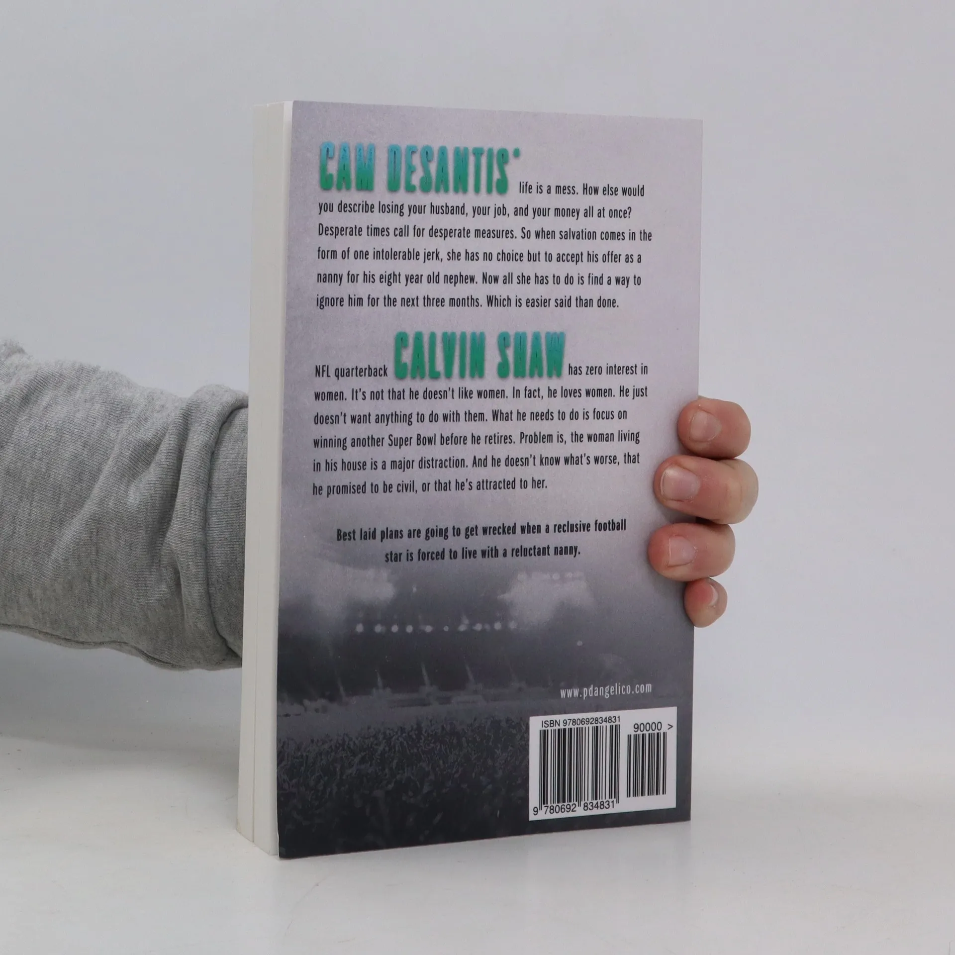 Cam DeSantis' life is a hot, steaming pile. How else would you describe losing your husband, your job, and your money all at once? Desperate times call for desperate measures, so when salvation comes in the form of one intolerable a-hole, who just happens to be the starting quarterback for the vaunted NY Titans, she has no choice but to accept his offer as a live-in nanny slash teacher for his eight year old nephew. Now all she has to do is find a safe place in her mind to hide whenever she feels the need to throat punch him into tomorrow...which is often. Calvin Shaw has zero interest in women. Wait, wait--let me rephrase that. He loves women, he just doesn't want anything to do with 'um. Not since his wife, presently ex-wife, got knocked up by the guy she was cheating on him with. Problem is--there's one living in his house. And he doesn't know what's worse, that he promised to be civil, or that he's attracted to her.