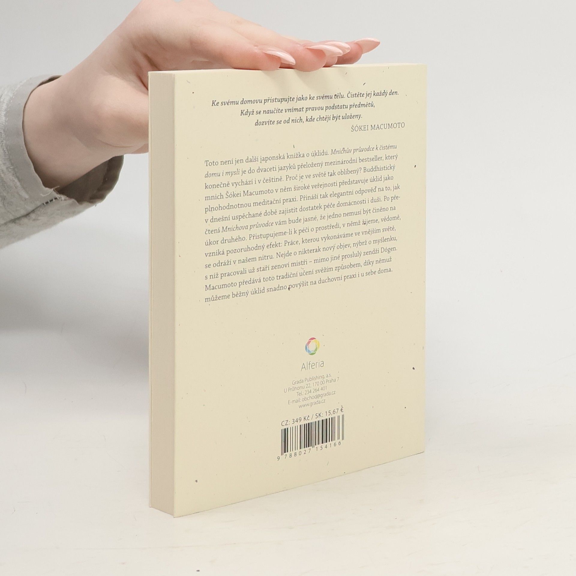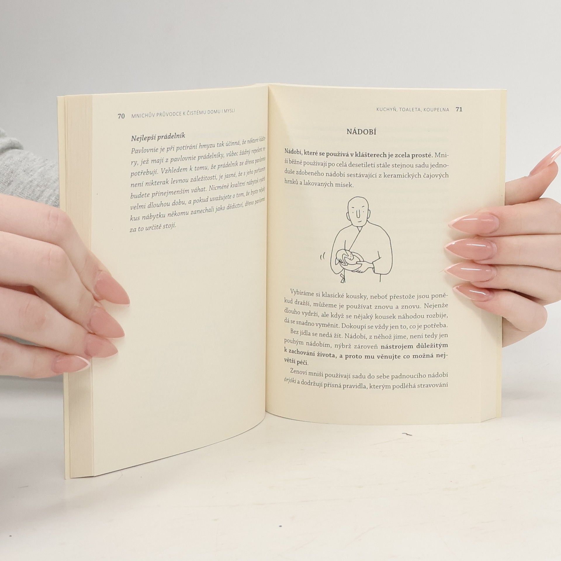 Toto není jen další japonská knížka o úklidu. Mnichův průvodce k čistému domu i mysli je přibližně do dvaceti jazyků přeložený mezinárodní bestseller, který konečně vychází i v češtině. Proč je ve světě tak oblíbený? Buddhistický mnich Šókei Macumoto v něm široké (tedy i nebuddhistické) veřejnosti představuje úklid jako plnohodnotnou meditační praxi. Přináší tak elegantní odpověď na to, jak v dnešní uspěchané době zajistit dostatek péče pro svou domácnost i pro svou duši. Po přečtení Mnichova průvodce vám bude jasné, že jedno nemusí být činěno na úkor druhého. Přistupujeme-li k péči o prostředí, v němž žijeme, vědomě, vzniká pozoruhodný efekt: Práce, kterou vykonáváme ve vnějším světě, se odráží v našem nitru. Nejde o nikterak nový objev, nýbrž o myšlenku, s níž pracovali už staří zenoví mistři – mimo jiné proslulý zendži Dógen. Macumoto předává toto tradiční učení svěžím a jednoduchým způsobem, díky němuž můžeme běžný úklid snadno povýšit na duchovní praxi i u sebe doma.
