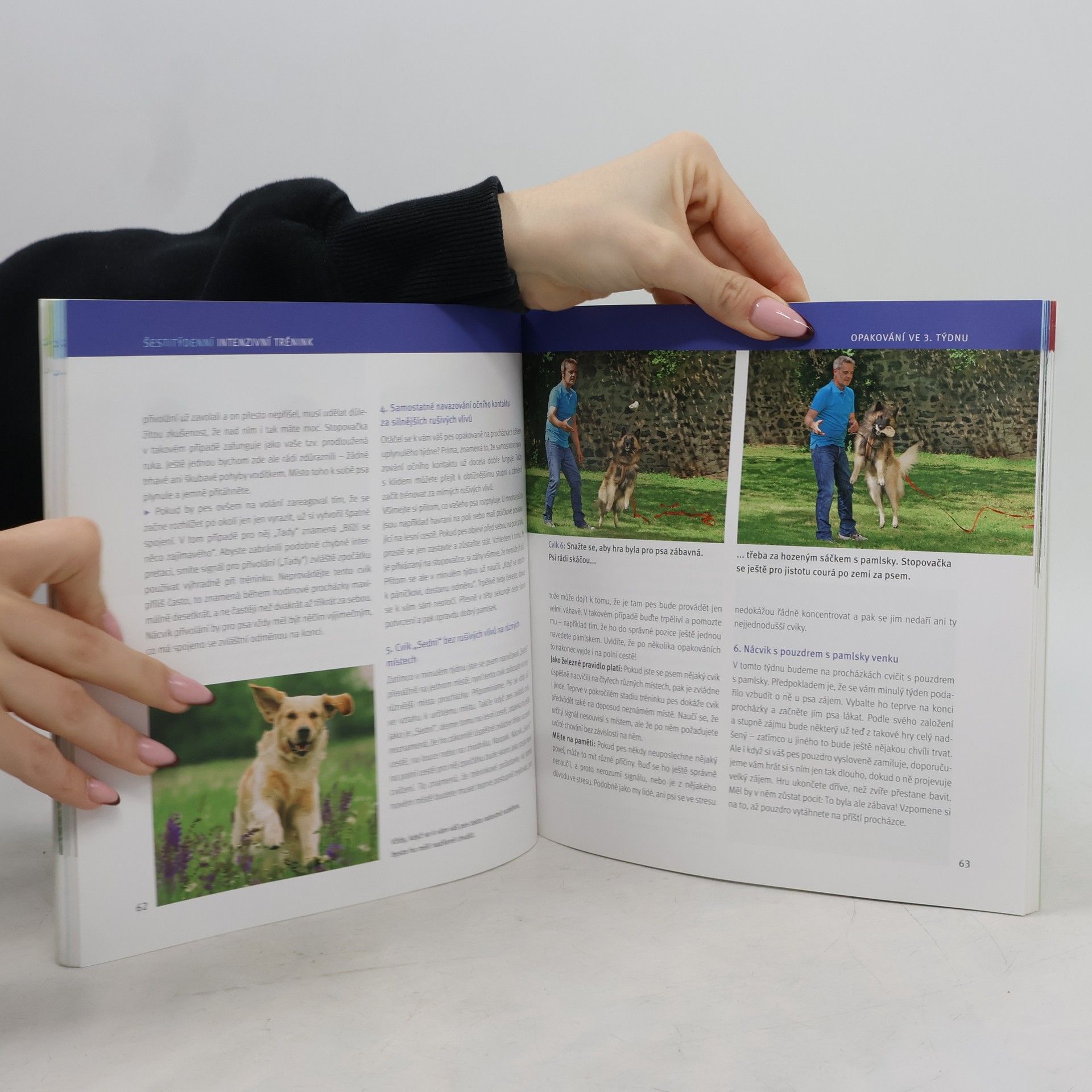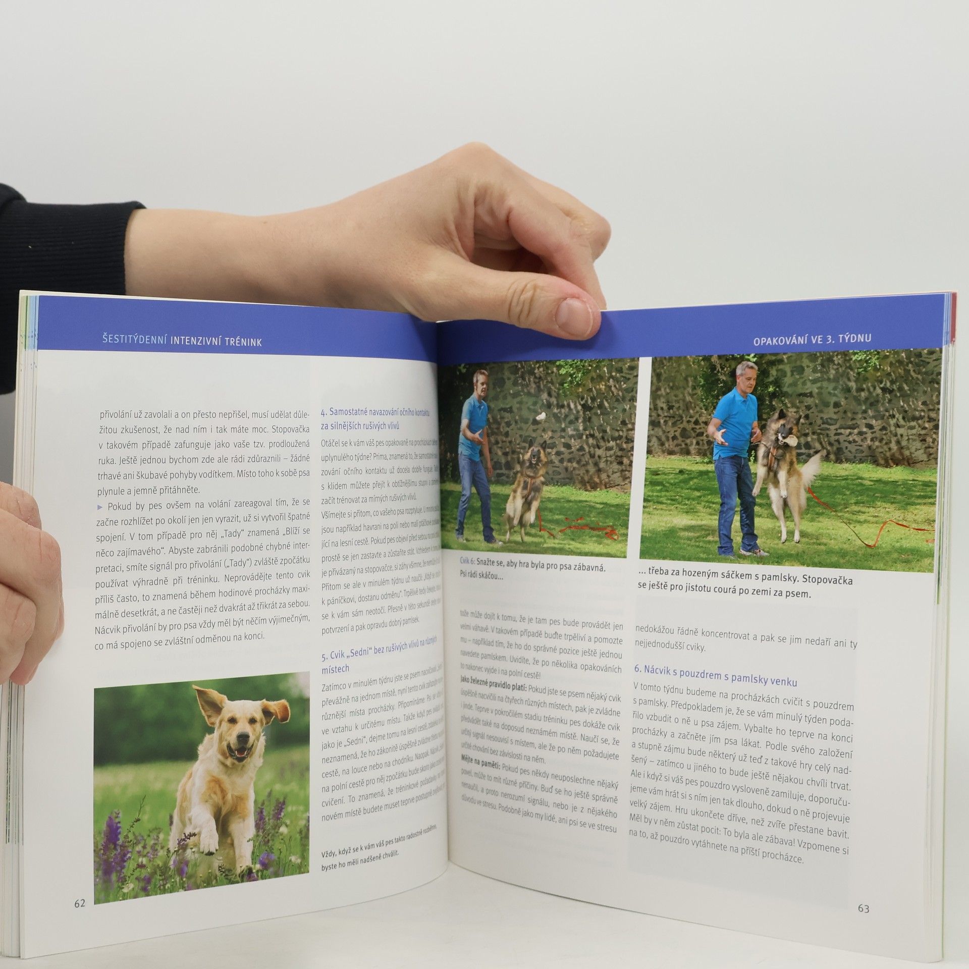 Šestitýdenní výcvikový plán je určený především pro majitele, kteří na dlouhý a náročný trénink svého domácího mazlíčka nemají čas. Tato kniha jim poradí, jak vytrénovat psa hravě a úsporně na každodenních tematických procházkách, a je určena pro všechna plemena bez rozdílu věku. Uvádí konkrétní návody doplněné obrazovým doprovodem, které krok za krokem znázorňují teorii i praxi.