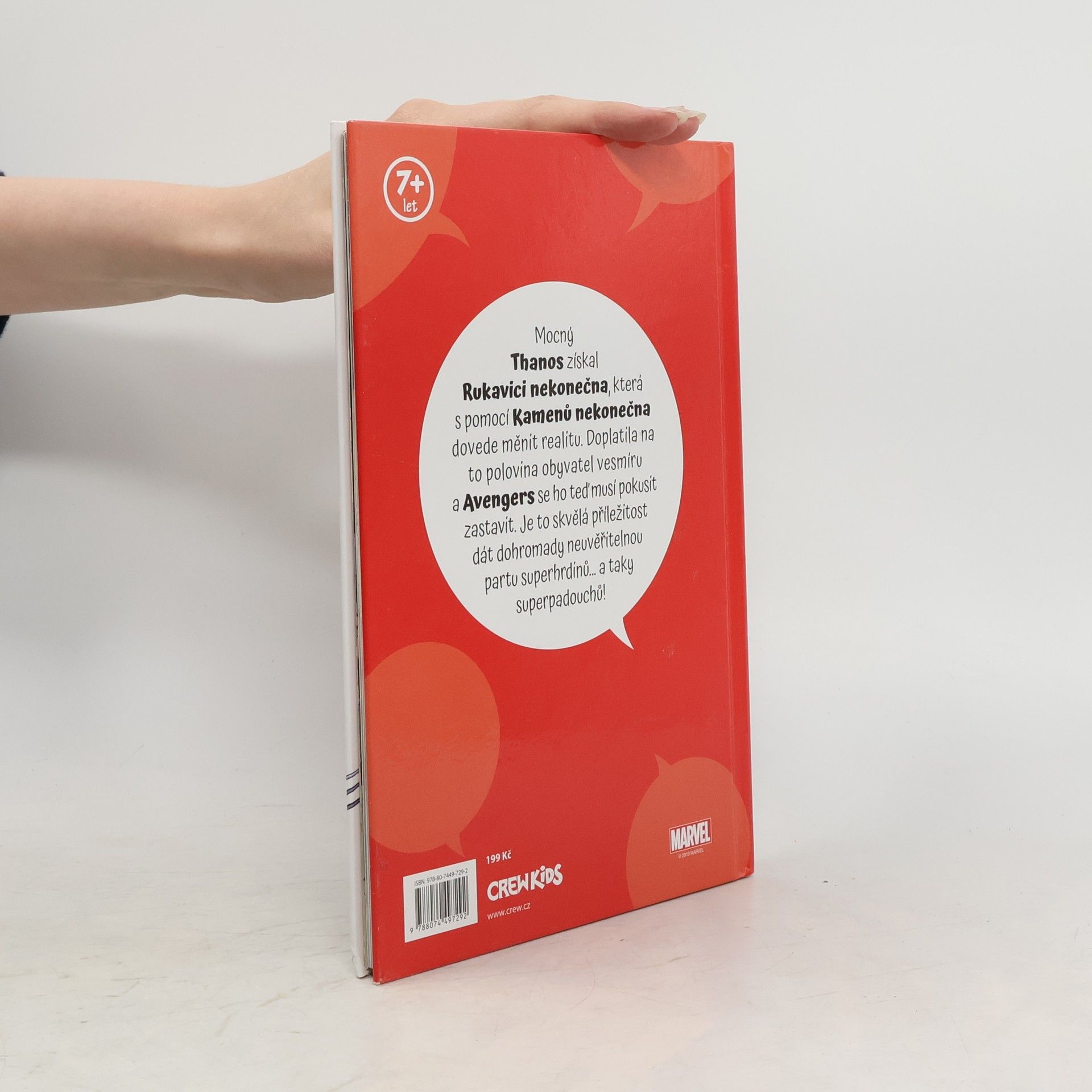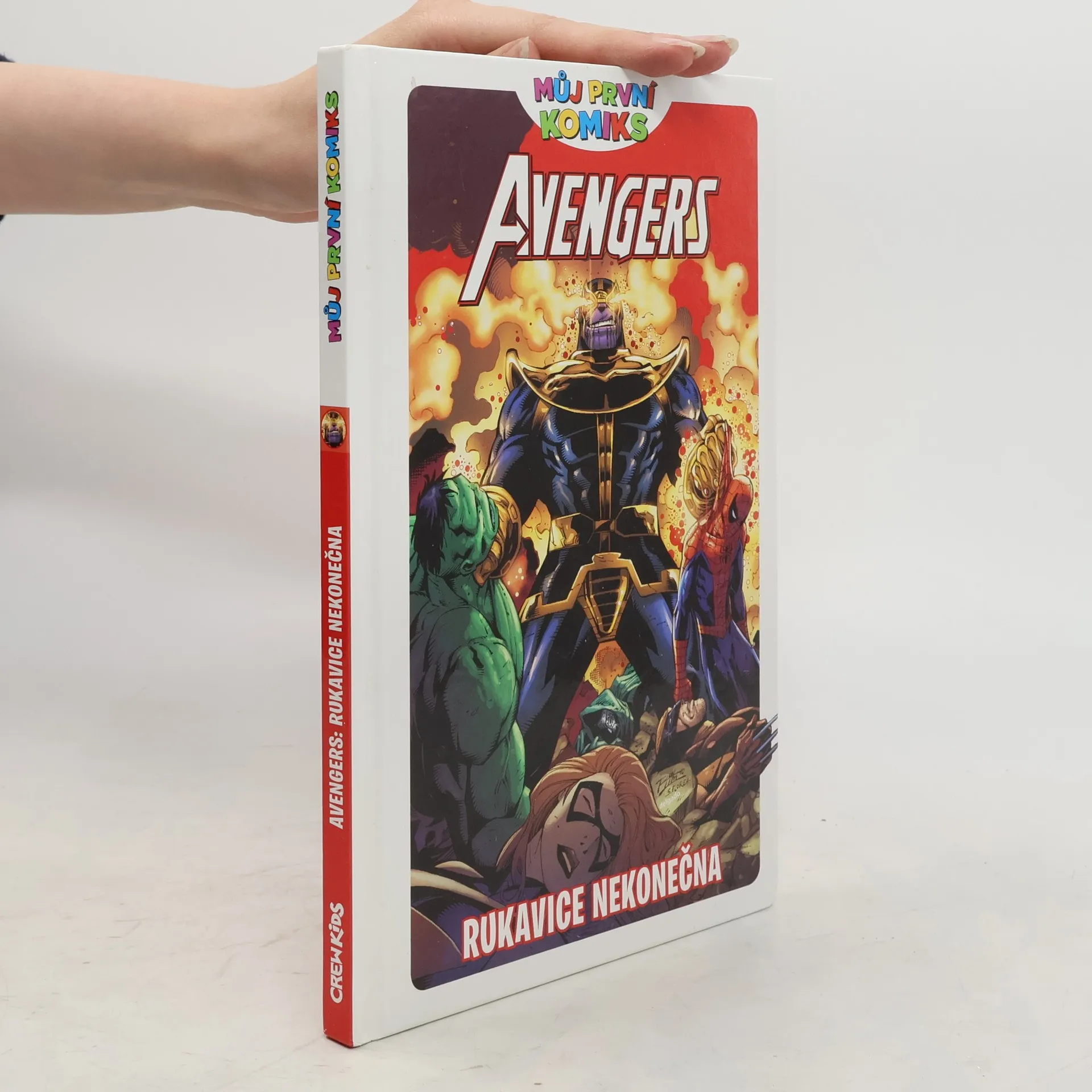 Thanos, postrach vesmíru, získal klenoty nekonečna, které mu dávají vládu nad celým vesmírem. S mocí klenotů zničil polovinu populace všech světů, včetně mnoha Avengerů a polovinu Fantastic Four. Jak dokáže malá skupina hrdinů a padouchů včetně Spider-Mana, Wolverina, Ms. Marvel a Doctora Dooma zastavit nezastavitelné? Legendární příběh zpracovaný pro mladší čtenáře!