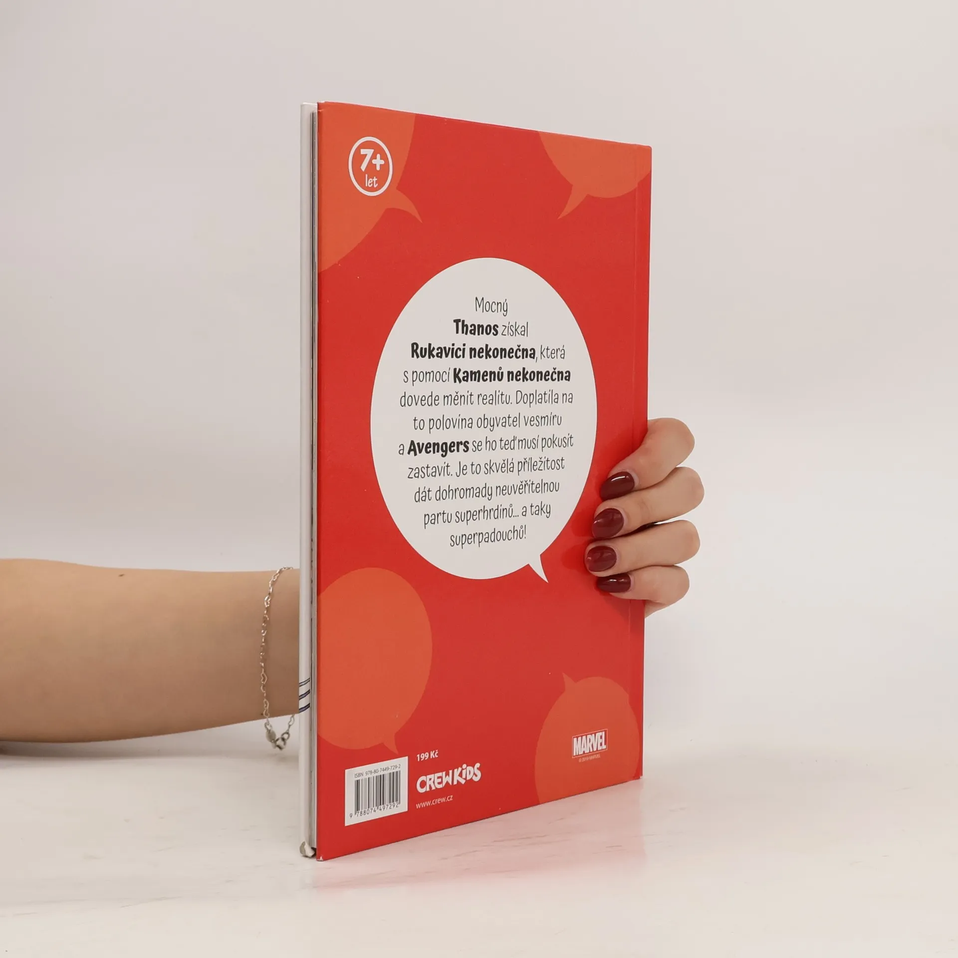 Thanos, postrach vesmíru, získal klenoty nekonečna, které mu dávají vládu nad celým vesmírem. S mocí klenotů zničil polovinu populace všech světů, včetně mnoha Avengerů a polovinu Fantastic Four. Jak dokáže malá skupina hrdinů a padouchů včetně Spider-Mana, Wolverina, Ms. Marvel a Doctora Dooma zastavit nezastavitelné? Legendární příběh zpracovaný pro mladší čtenáře!