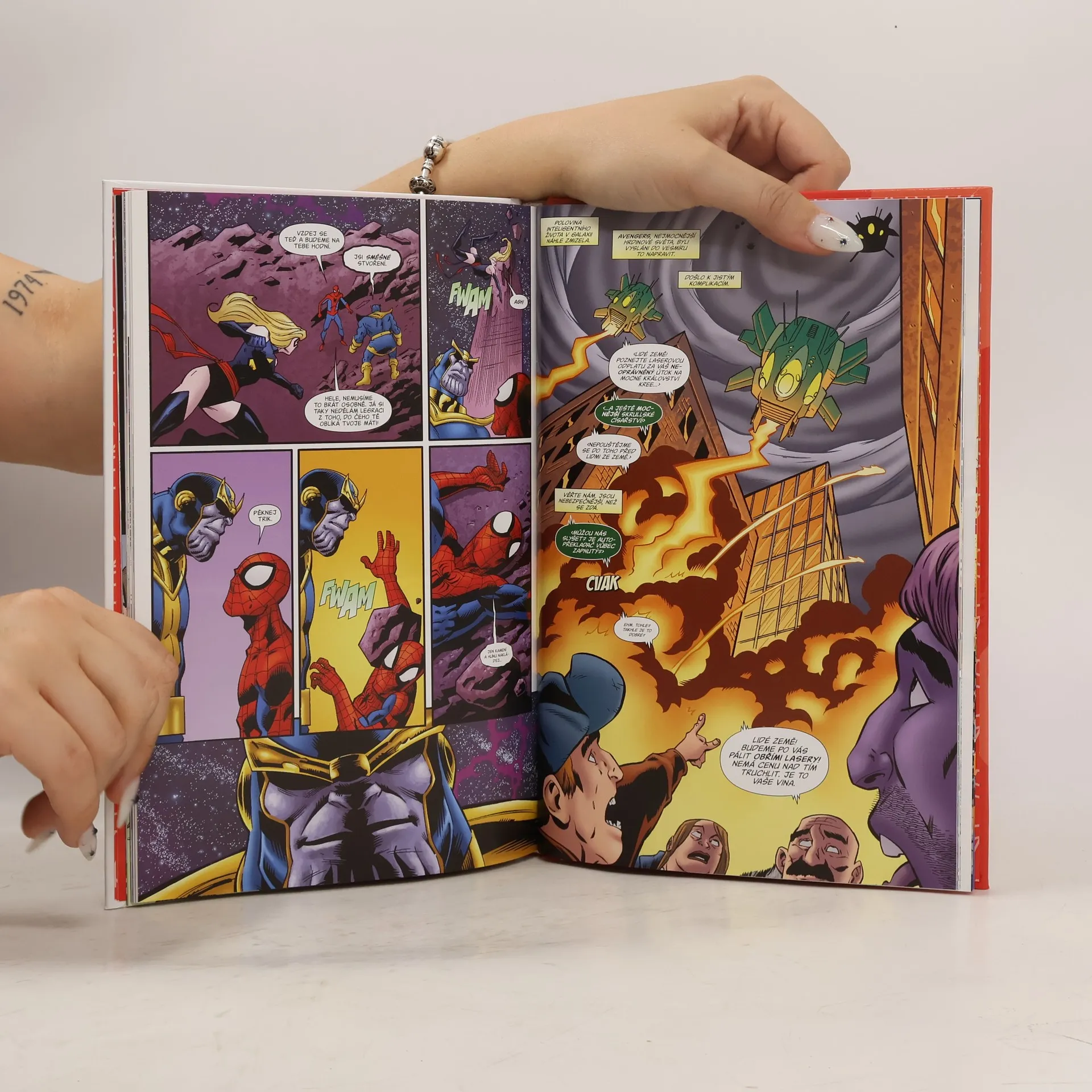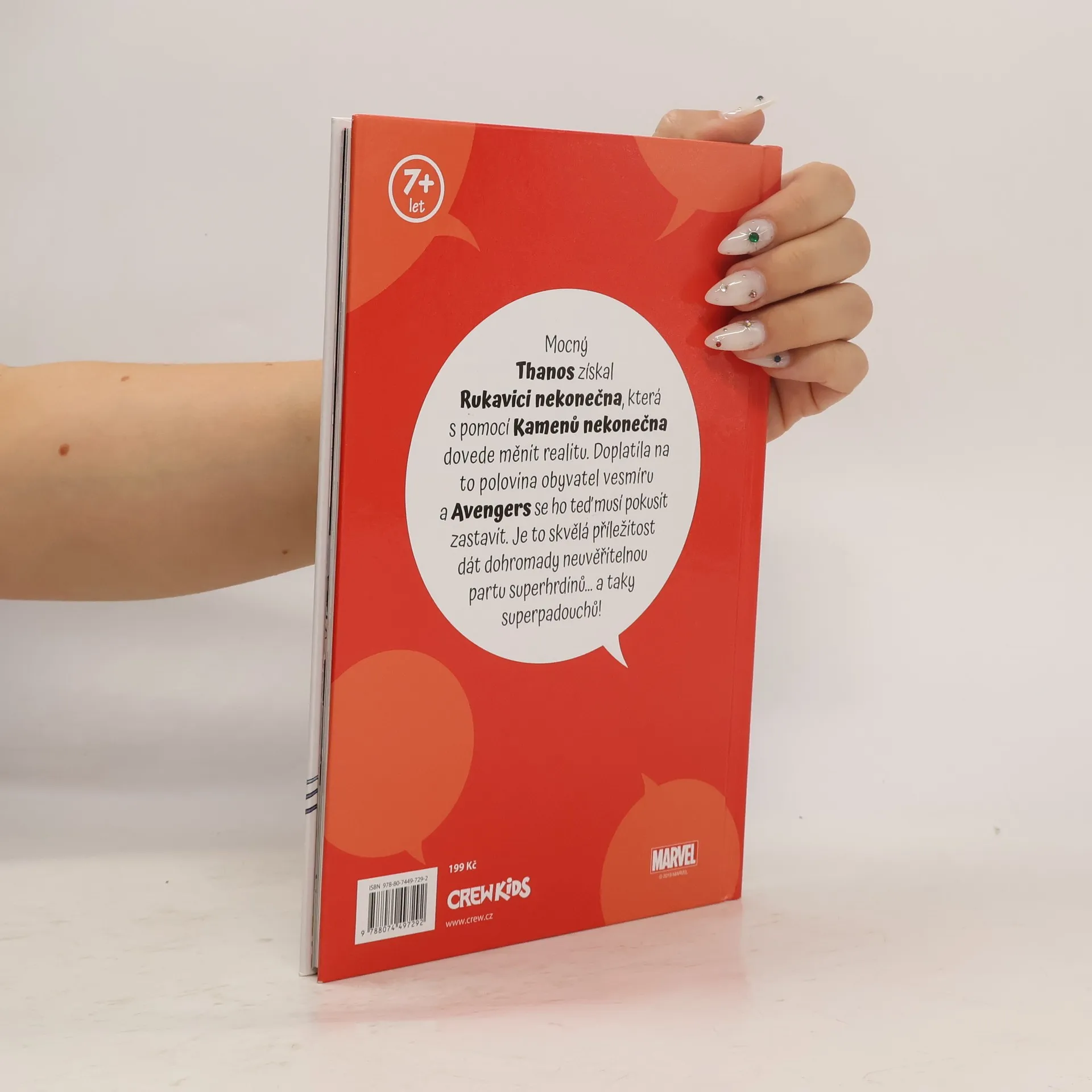 Thanos, postrach vesmíru, získal klenoty nekonečna, které mu dávají vládu nad celým vesmírem. S mocí klenotů zničil polovinu populace všech světů, včetně mnoha Avengerů a polovinu Fantastic Four. Jak dokáže malá skupina hrdinů a padouchů včetně Spider-Mana, Wolverina, Ms. Marvel a Doctora Dooma zastavit nezastavitelné? Legendární příběh zpracovaný pro mladší čtenáře!