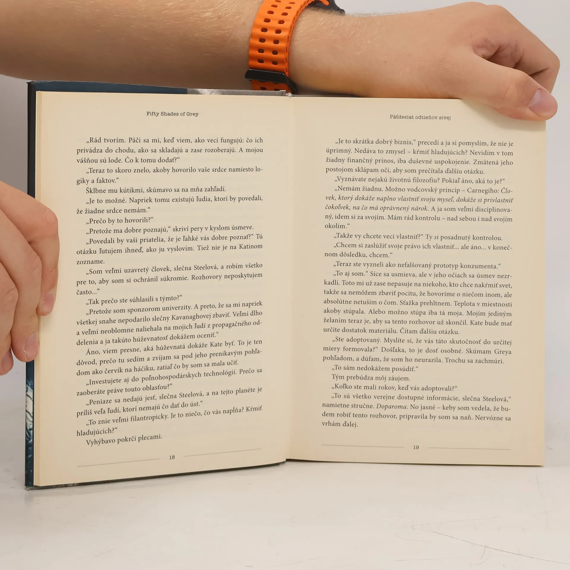 Strhujúci erotický román o temných túžbach v každom z nás... Keď sa dvadsaťdvaročná študentka literatúry Anastasia vydáva na pohovor s mladým podnikateľom Christianom Greyom, netuší, že stretne muža, ktorý jej zmení život a hodnoty. Christian je pekný, chytrý, a... tajomný. Naivná a nevinná Anastasia si začína uvedomovať, že aj napriek jeho skrývanému tajomstvu, začína byť nim úplne posadnutá. Ale ani Christian nie je voči jej kráse, šarmu a charakteru imúnny a pripúšťa že on po nej tiež túži – avšak za vlastných, špecifických podmienok...