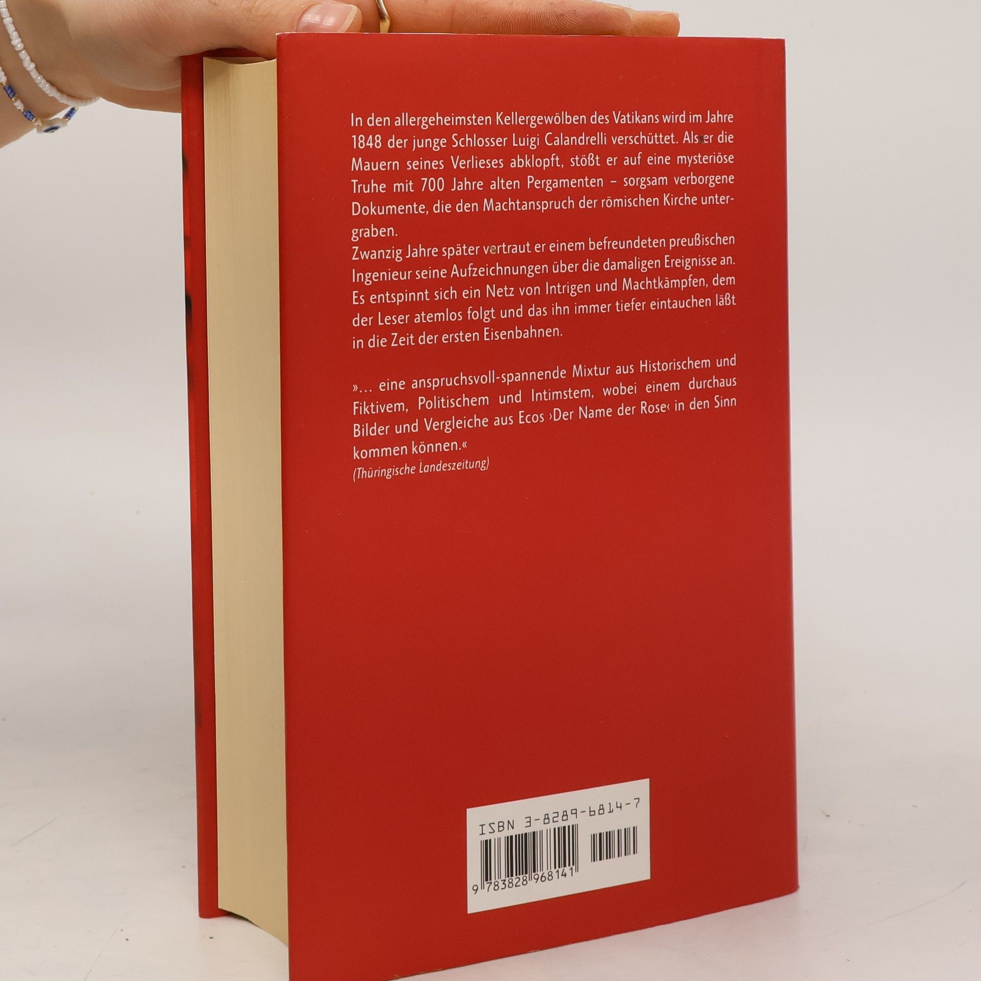 Ein historischer Thriller der Extraklasse Im Kellerlabyrinth des Vatikans wird im Jahre 1848 ein junger Schlosser verschüttet. Bei seinem Befreiungsversuch stößt er auf eine mysteriöse Truhe mit uralten Pergamenten, die den Machtanspruch der römischen Kirche untergraben. Als er zwanzig Jahre später einem Ingenieur seine Aufzeichnungen anvertraut, bringt er ihn damit in Lebensgefahr. „… eine anspruchsvoll-spannende Mixtur aus Historischem und Fiktivem, Politischem und Intimstem, wobei einem durchaus Bilder und Vergleiche aus Ecos ‚Der Name der Rose’ in den Sinn kommen können.“ Thüringische Landeszeitung