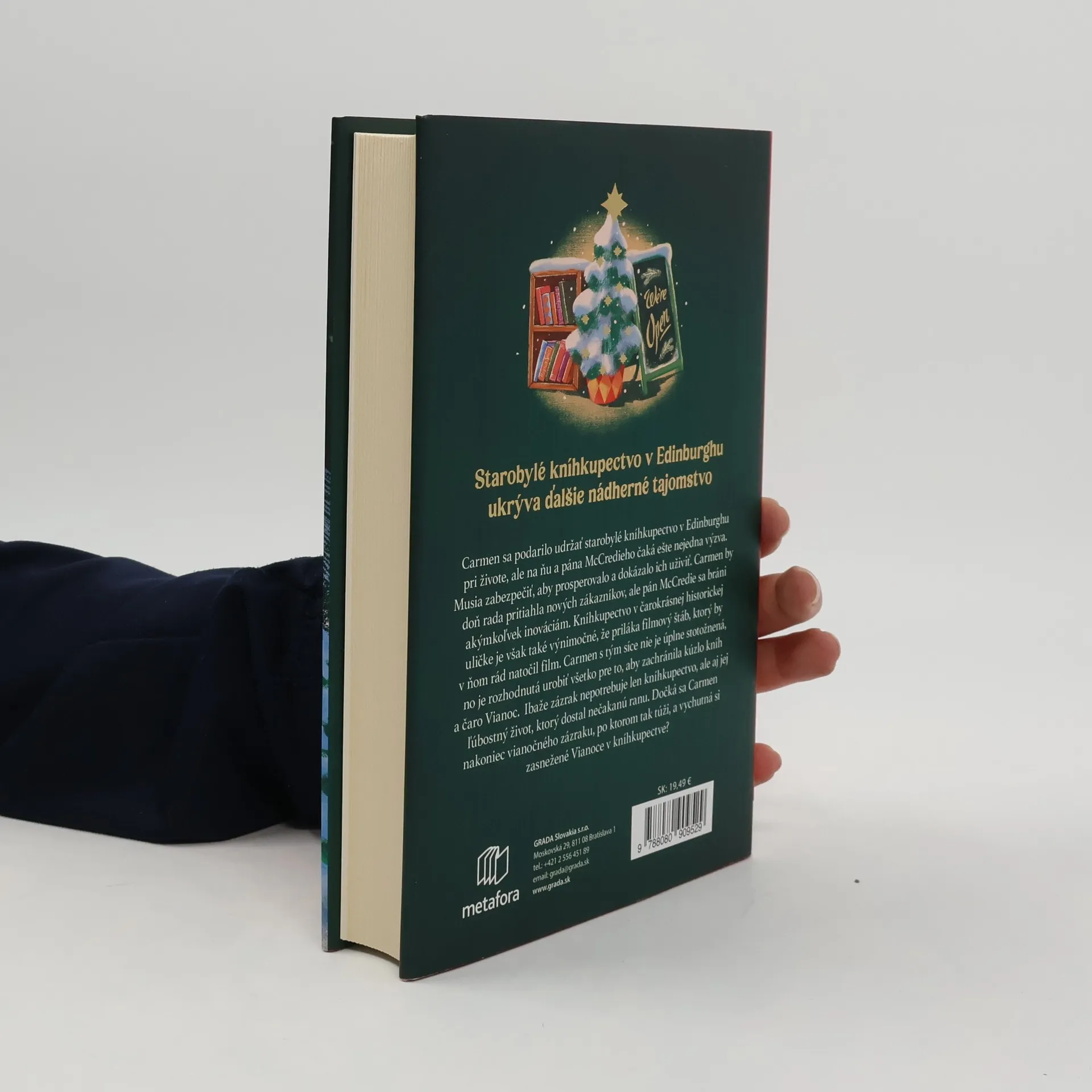 Starobylé kníhkupectvo v Edinburghu ukrýva ďalšie nádherné tajomstvo. Carmen sa podarilo udržať starobylé kníhkupectvo v Edinburghu pri živote, ale na ňu a pána McCredieho čaká ešte nejedna výzva. Musia zabezpečiť, aby prosperovalo a dokázalo ich uživiť. Carmen by doň rada pritiahla nových zákazníkov, ale pán McCredie sa bráni akýmkoľvek inováciám. Kníhkupectvo v čarokrásnej historickej uličke je však natoľko výnimočné, že priláka filmový štáb, ktorý by v ňom rád natočil film. Carmen s tým síce nie je úplne stotožnená, no je rozhodnutá urobiť všetko pre to, aby zachránila kúzlo kníh a čaro Vianoc. Ibaže zázrak nepotrebuje len kníhkupectvo, ale aj jej ľúbostný život, ktorý dostal nečakanú ranu. Dočká sa Carmen nakoniec vianočného zázraku, po ktorom tak túži, a vychutná si zasnežené Vianoce v kníhkupectve?