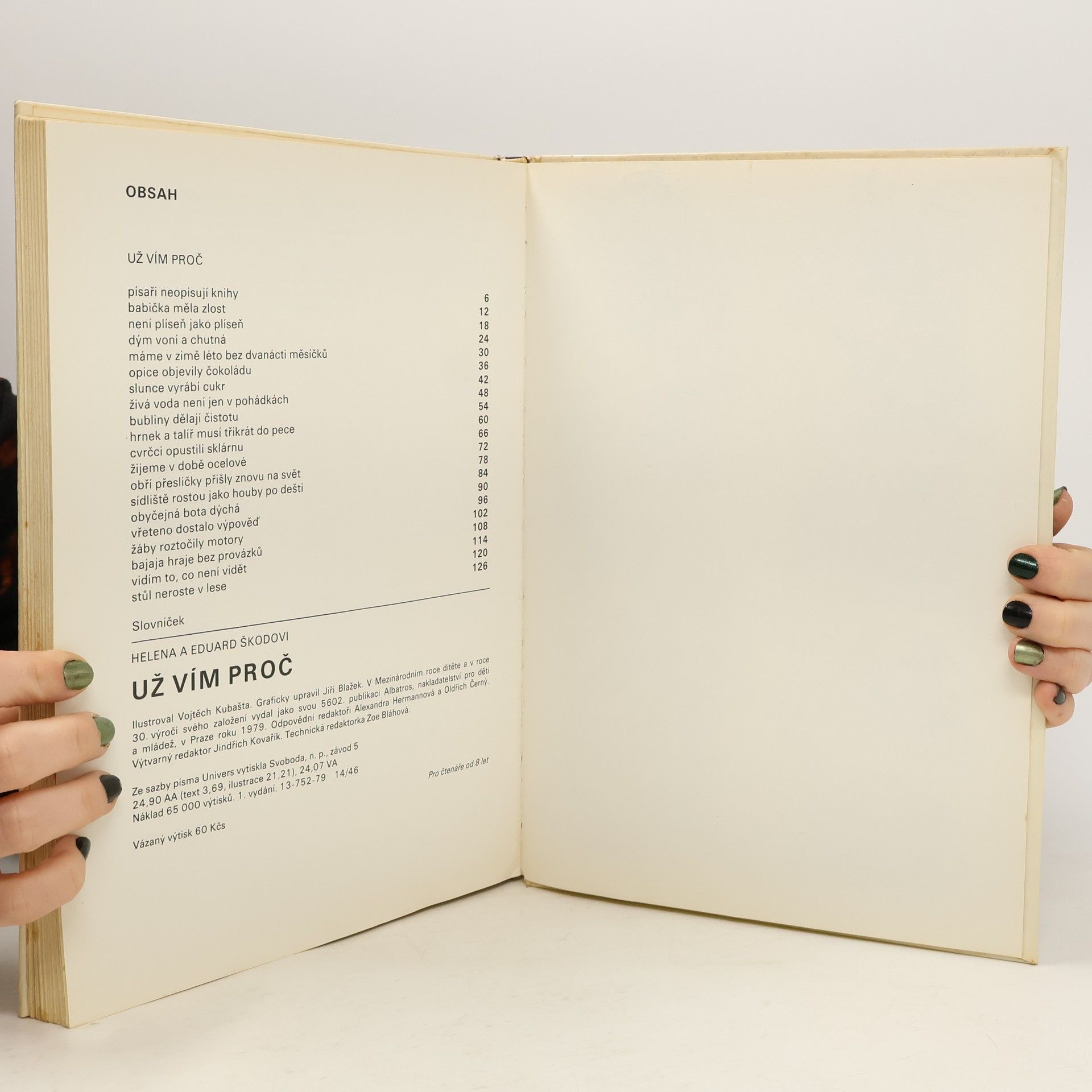 Z této knížky se dozvíte nejen o historii, vzniku a výrobě sýrů, chleba, uzenin, mrazených výrobků, ale také o látce na šaty, mýdle, skle a porcelánu, zrodu knih a knihovniček, pochopíte leccos z tajů elektřiny a televizního přenosu a jiných, nejméně zajímavých věcí.