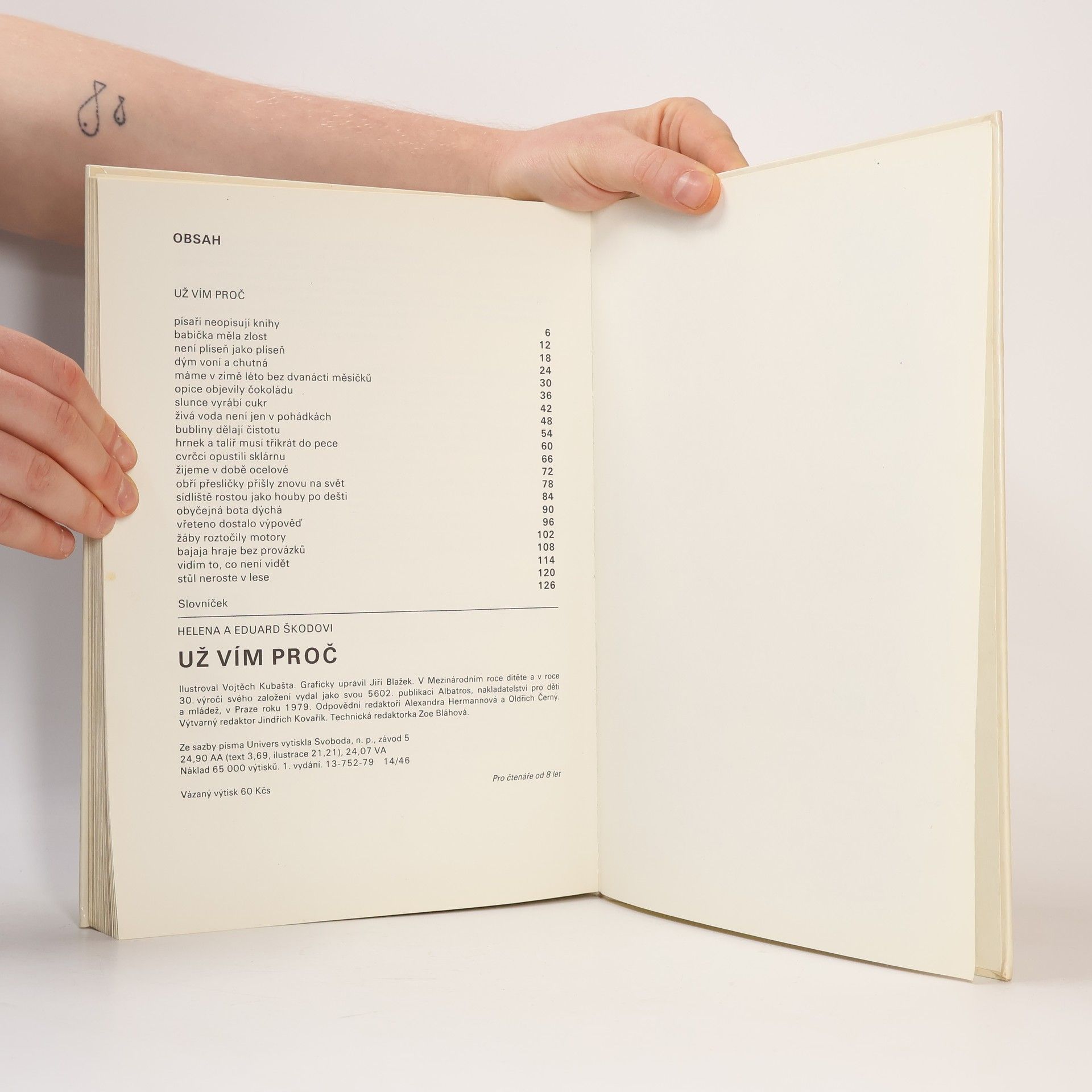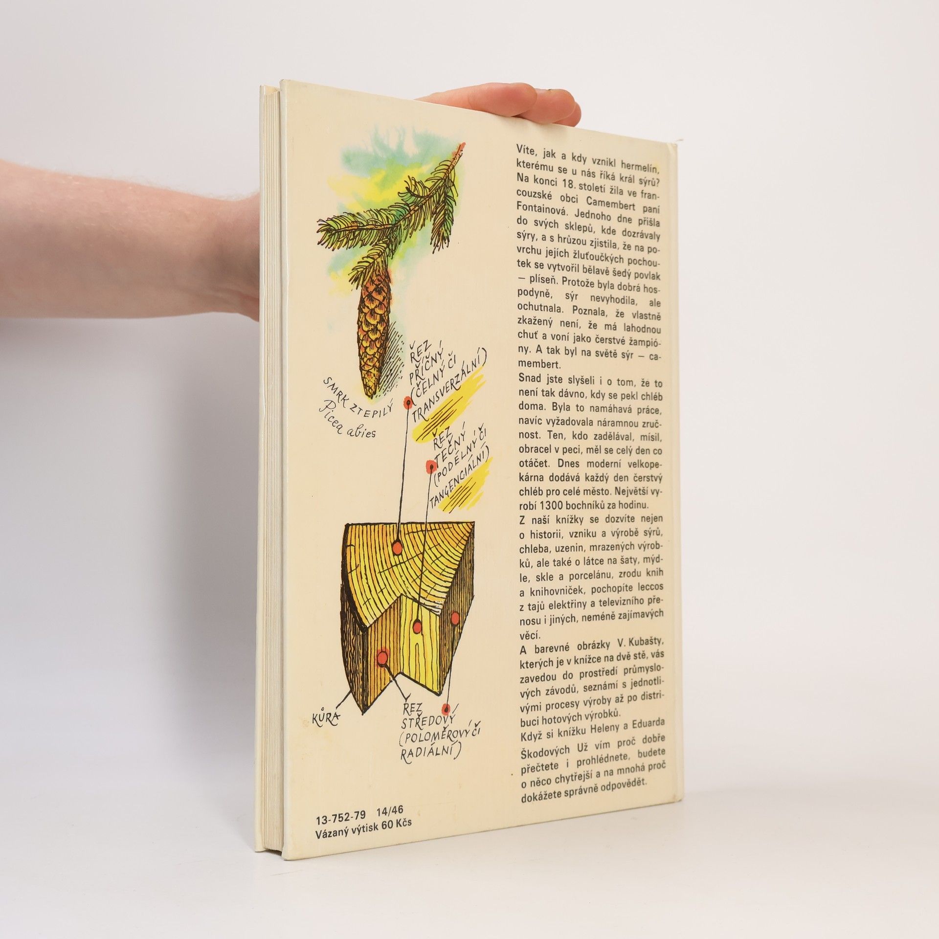 Z této knížky se dozvíte nejen o historii, vzniku a výrobě sýrů, chleba, uzenin, mrazených výrobků, ale také o látce na šaty, mýdle, skle a porcelánu, zrodu knih a knihovniček, pochopíte leccos z tajů elektřiny a televizního přenosu a jiných, nejméně zajímavých věcí.