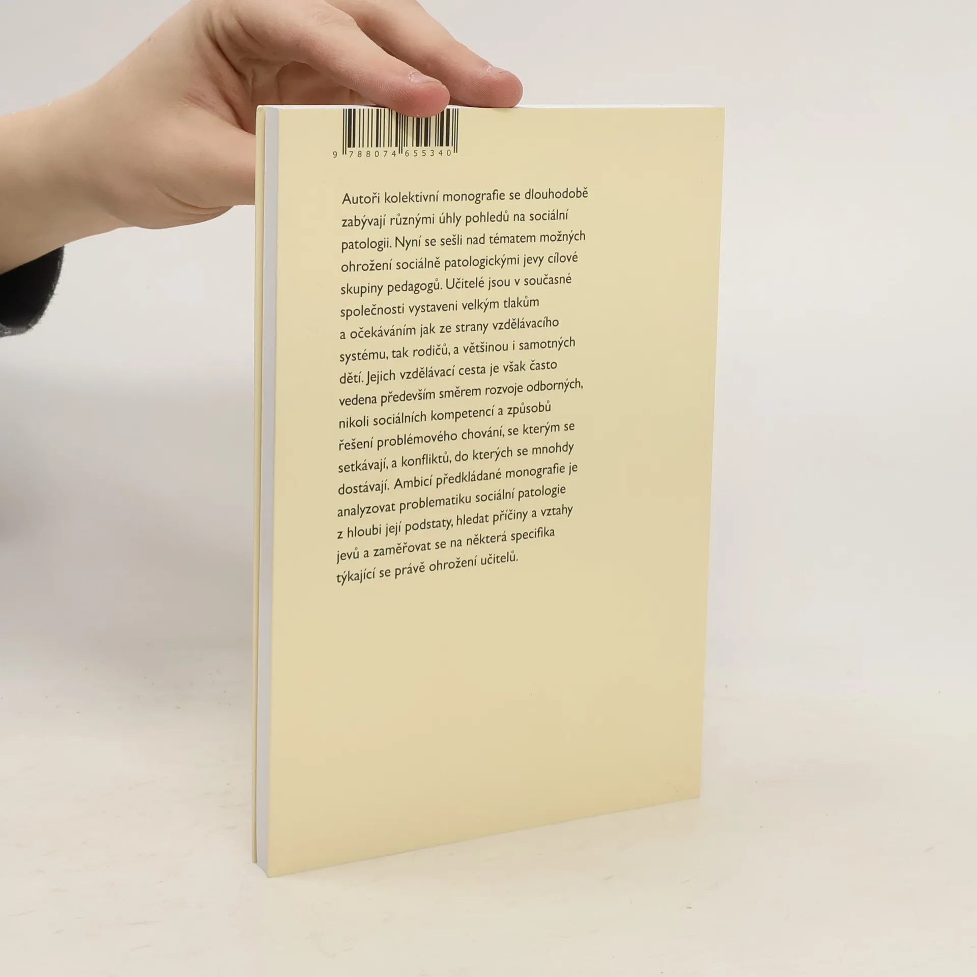Autoři kolektivní monografie se dlouhodobě zabývají různými úhly pohledů na sociální patologii. Nyní se sešli nad tématem možných ohrožení sociálně patologickými jevy cílové skupiny pedagogů. Učitelé jsou v současné společnosti vystaveni velkým tlakům a očekáváním jak ze strany vzdělávacího systému, tak rodičů, a většinou i samotných dětí. Jejich vzdělávací cesta je však často vedena především směrem rozvoje odborných, nikoli sociálních kompetencí a způsobů řešení problémového chování, se kterým se setkávají, a konfliktů, do kterých se mnohdy dostávají. Ambicí předkládané monografie je analyzovat problematiku sociální patologie z hloubi její podstaty, hledat příčiny a vztahy jevů a zaměřovat se na některá specifika týkající se právě ohrožení učitelů.