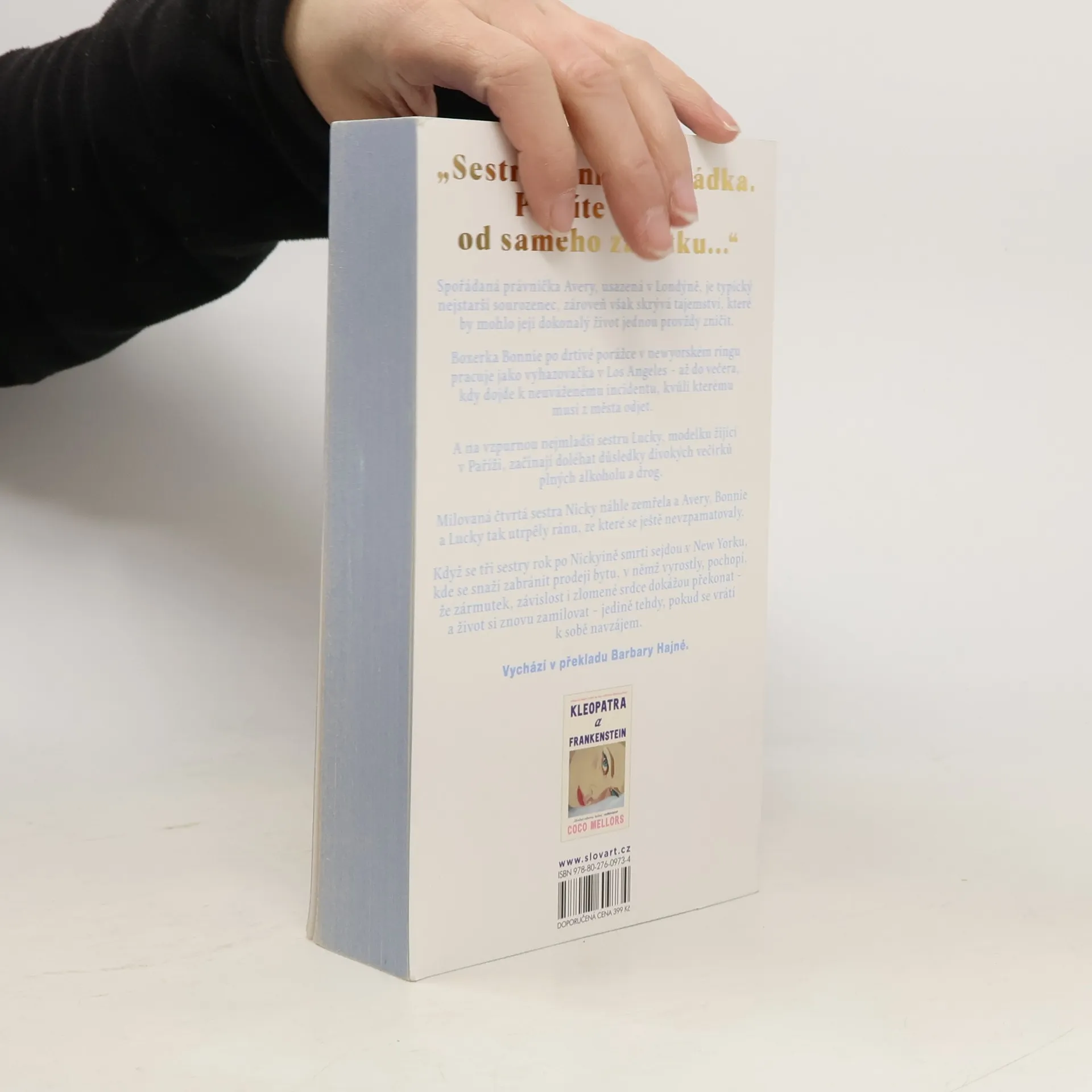 Sestry Blueovy byly původně čtyři. Jedna z nich ale nečekaně zemřela a zbývající tři se rok po její smrti vrací z různých světových velkoměst do rodného New Yorku, aby tam zabránily prodeji bytu, v němž vyrostly. Prvorozená Avery, vyléčená ze závislosti na heroinu, je úspěšná právnička a žije s manželkou v Londýně. Někdejšíboxerská šampionka Bonnie, tajně zamilovaná do svého trenéra, momentálně pracuje jako vyhazovačka v baru v Los Angeles. A nejmladší Lucky, modelce žijící v Paříži, se postupně vymyká z rukou existence plná večírků a návykových substancí. Tragická smrt jejich sestry Nicky otřásla životy jich všech. Přichází čas odhalování tajemství, dávných i nedávných traumat a pravé podstaty sesterství. Druhý román Coco Mellors, autorky bestselleru Kleopatra a Frankenstein, se soustředí především na složité rodinné vztahy a na dopad, jaký na ně mohou mít ambice, zármutek i závislost.