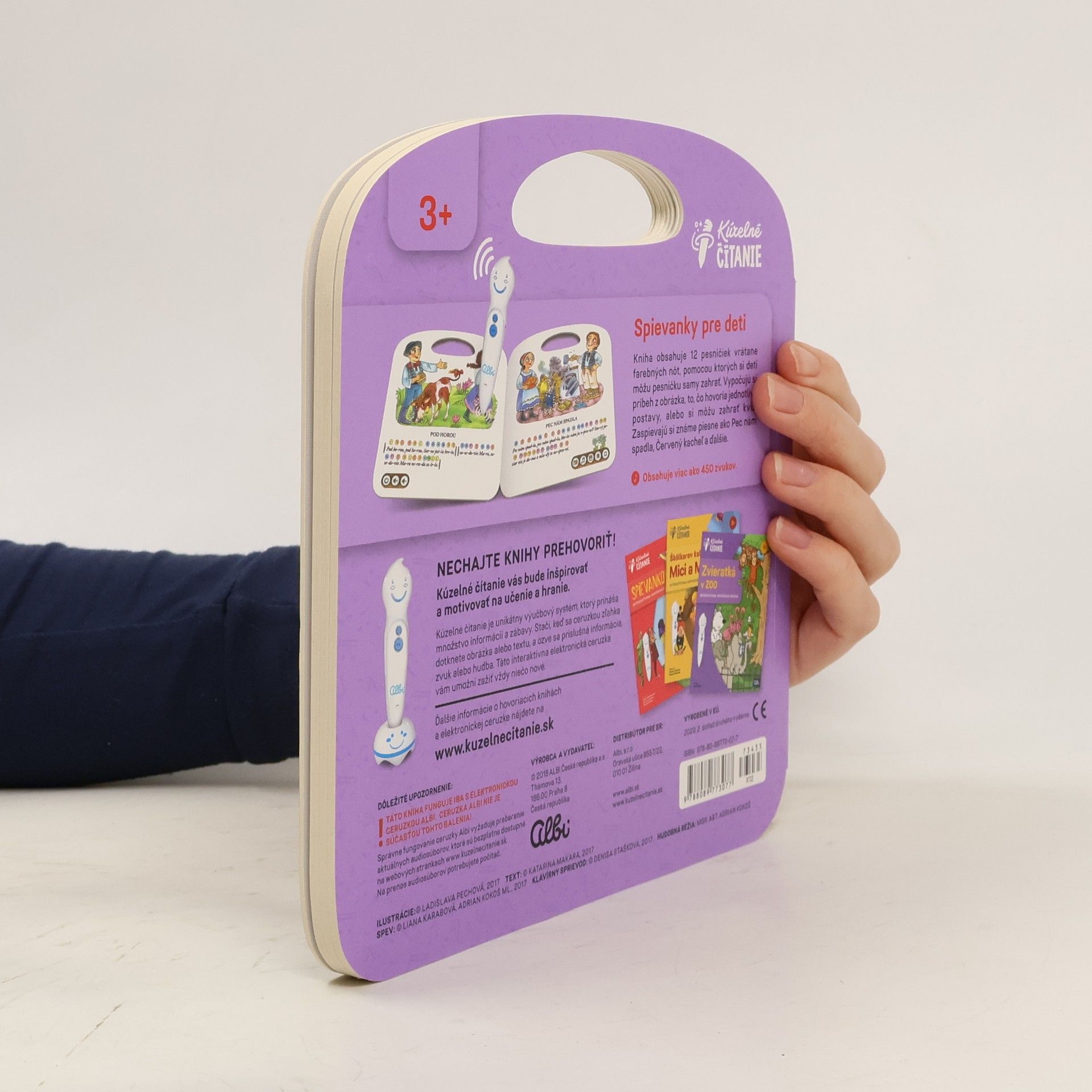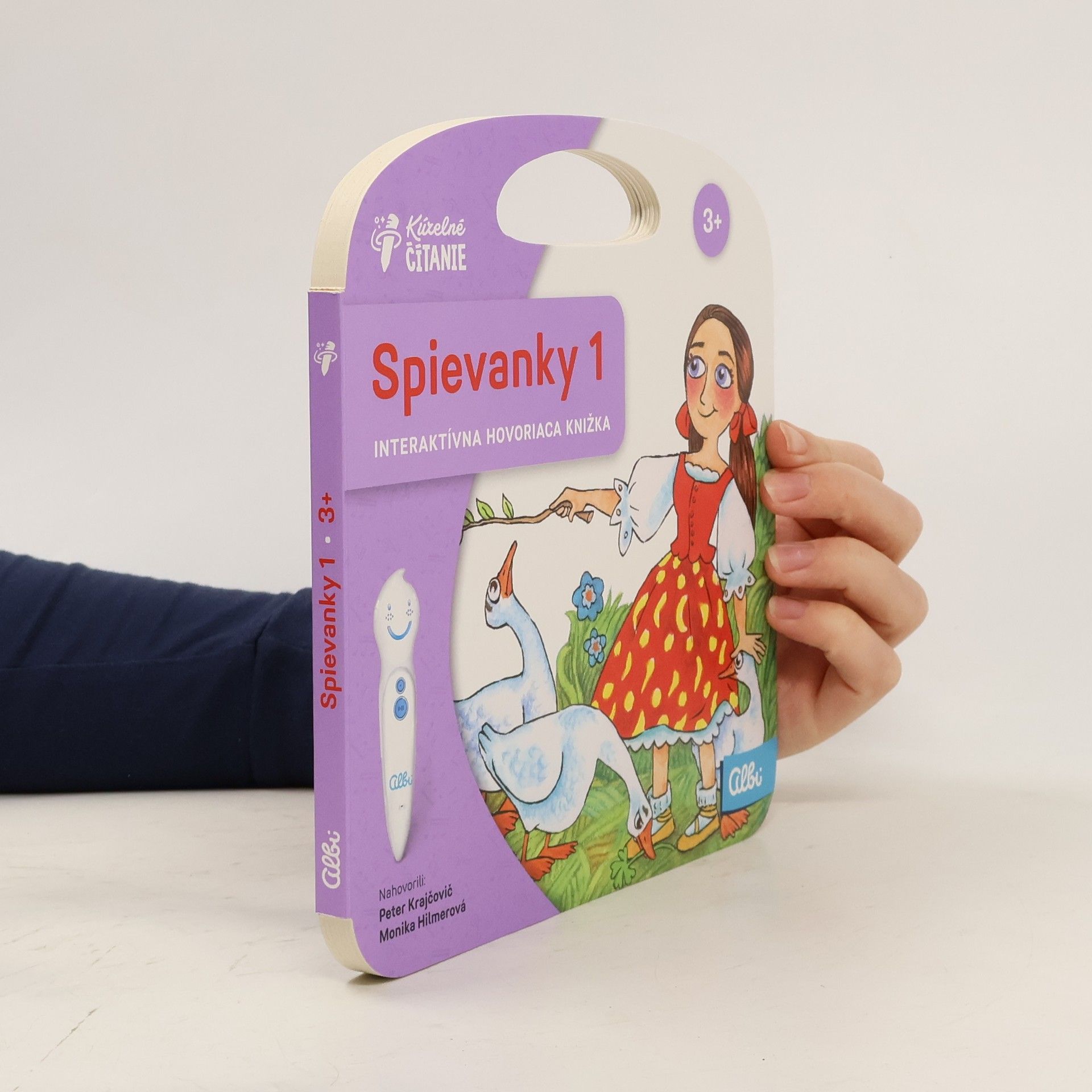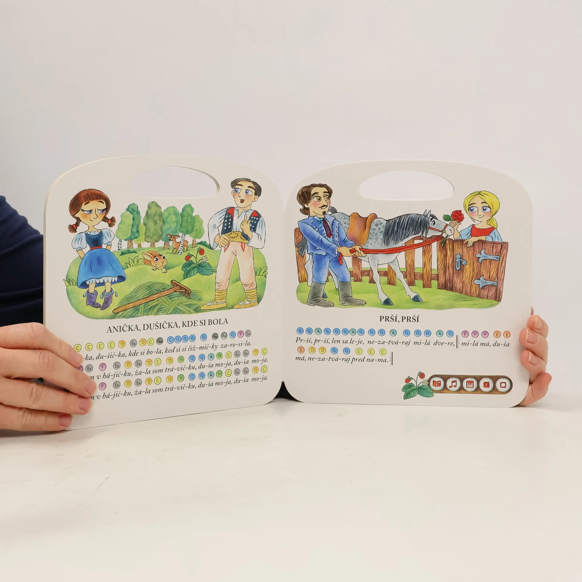 Hovoriaca kniha obsahuje 12 ľudových pesničiek pre deti vrátane farebných nôt, pomocou ktorých si deti môžu pesničku samy zahrať. Vypočujú si príbeh z obrázka, čo hovoria jednotlivé postavy alebo si môžu zahrať jednoduchý kvíz. Zaspievajú si známe piesne ako Pec nám spadla, Červený kacheľ, Krásna, krásna, Číže si šuhajko, Kukulianka, Čierne oči a ďalšie. Hovoriaca kniha obsahuje viac ako 450 zvukov a textov. Knihu nahovorili známi slovenskí herci Monika Hilmerová a Peter