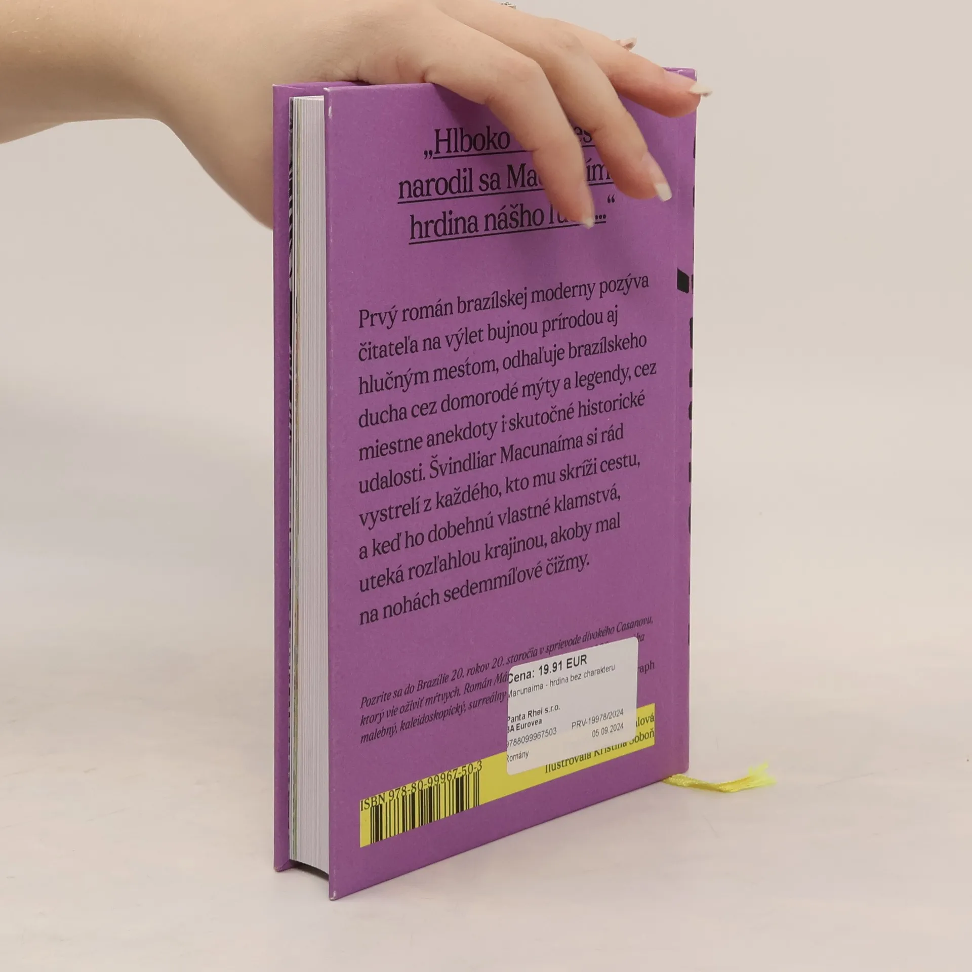 Hlboko v pralese narodil sa Macunaíma, hrdina nášho ľudu...“ Prvý román brazílskej moderny pozýva čitateľa na výlet bujnou prírodou aj hlučným mestom, odhaľuje brazílskeho ducha cez domorodé mýty a legendy, cez miestne anekdoty i skutočné historické udalosti. Švindliar Macunaíma si rád vystrelí z každého, kto mu skríži cestu, a keď ho dobehnú vlastné klamstvá, uteká rozľahlou krajinou, akoby mal na nohách sedemmíľové čižmy.
