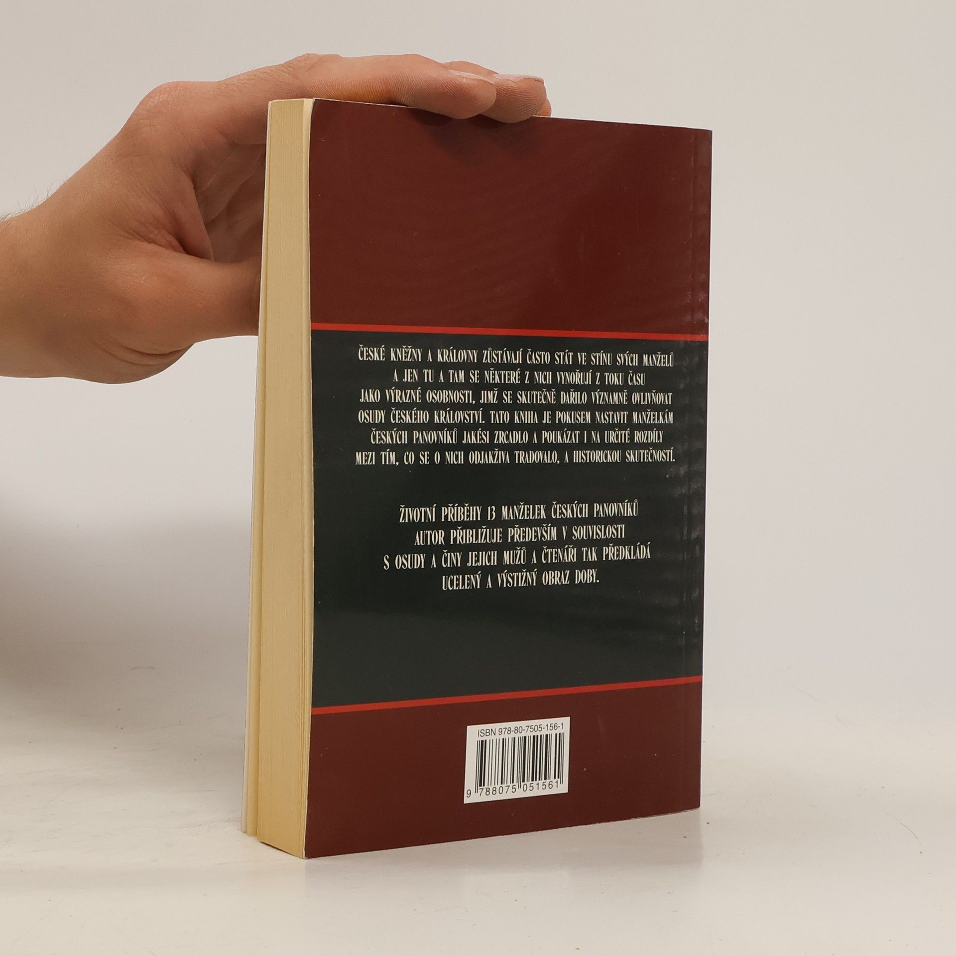 České kněžny a královny zůstávají často stát ve stínu svých manželů a jen tu a tam se některé z nich vynořují z toku času jako výrazné osobnosti, jimž se skutečně dařilo významně ovlivňovat osudy českého království. Tato kniha je pokusem nastavit manželkám českých panovníků jakési zrcadlo a poukázat i na určité rozdíly mezi tím, co se o nich odjakživa tradovalo, a historickou skutečností.Životní příběhy 13 manželek českých panovníků autor přibližuje především v souvislosti s osudy a činy jejich mužů a čtenáři tak předkládá ucelený a výstižný obraz doby.