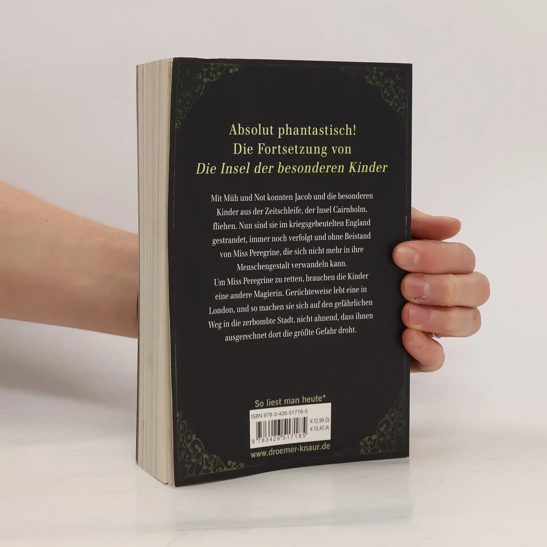 Die Fortsetzung von »Die Insel der besonderen Kinder« von Bestseller-Autor Ransom Riggs Jakob und die besonderen Kinder entkommen mit Mühe der Zeitschleife auf der Insel Cairnholm und landen im England der 1940er Jahre. Verfolgt von Feinden und ohne Unterstützung von Miss Peregrine, die sich nicht mehr in ihre Menschengestalt verwandeln kann, sind sie in großer Gefahr. Um sie zu retten, benötigen die Kinder die Hilfe einer anderen Magierin, die Gerüchten zufolge in London lebt. Sie machen sich auf den gefährlichen Weg in die zerbombte Stadt und finden schließlich Miss Wren, in der Hoffnung auf Rettung. Doch in dieser vermeintlichen Zuflucht erwartet sie der größte Verrat. »Besticht durch seine packende, ans Zeitalter der Wunder erinnernde Atmosphäre, stilistische Brillanz, Erzählfreude und tolle Ideen.« Phantastik-News.de über die Geschichte. Der zweite Band der erfolgreichen historischen Fantasy-Reihe rund um Jacob Portman und die besonderen Kinder. Die komplette Fantasy-Reihe des amerikanischen Bestseller-Autors Ransom Riggs umfasst insgesamt sechs Bände sowie einen Bonusband.